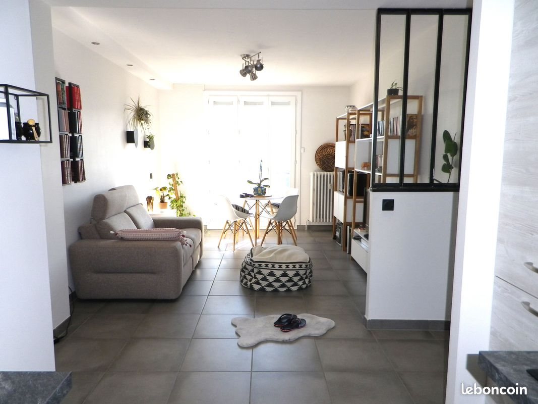 A vendre joli petit T3 de 55 m² avec garage 1 véhicule + cave et balcon au 4ème et dernier étage sans ascenseur, quartier calme. Joli petit appartement intégralement rénové en 2018, simple mais sobre et moderne avec cuisine équipée complète et ouverte sur séjour, 1 petit wc (suspendu) indépendant, salle d'eau ( douche, 1 vasque + 1 colonne et 1 sèche-serviettes), 2 jolies chambres avec placards aménagés et portes coulissantes. Compris petits balcons + garage 1 véhicule + cave saine. A proximité immédiate: des grands axes dont voie rapide Le Puy-Lyon des écoles ( de maternelles à supérieures) des accès transports en commun. La copropriété n'est pas de standing mais est très propre et bien entretenue. Charges comprenant chauffage, eau chaude, entretien espaces verts et des communs: 165€/mois environ. Taxe foncière 1216€. Immeuble sans ascenseur. La totalité des meubles peut rester pour la vente et sans supplément. Pas d'agence, svp, merci Si appel en semaine : après 19h, merci