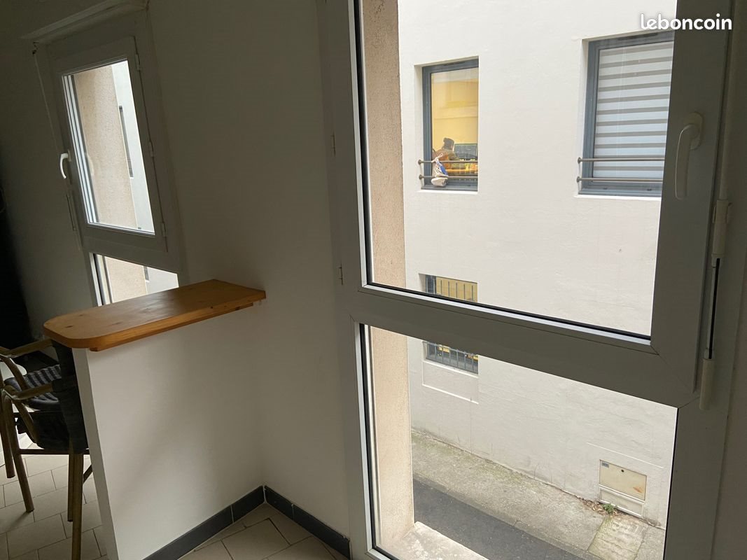 T1 meublé au 1er étage et comprenant: Entrée avec placard, pièce vivre avec double fenêtre sur arbres, tables basses, canapé lit transformable, table etchaises,cuisine équipée y compris vaisselle et couverts, feux de cuisine électriques, placard de rangement, réfrigérateur, vmc, sale d'eau avec placard de rangement, grand miroir su placard, chauffage électrique, cabine de douche en verre, toilette, chauffe-eau... Immeuble et appartement calme et lumineux, fibre dans l'immeuble, digicode, code port d'entrée