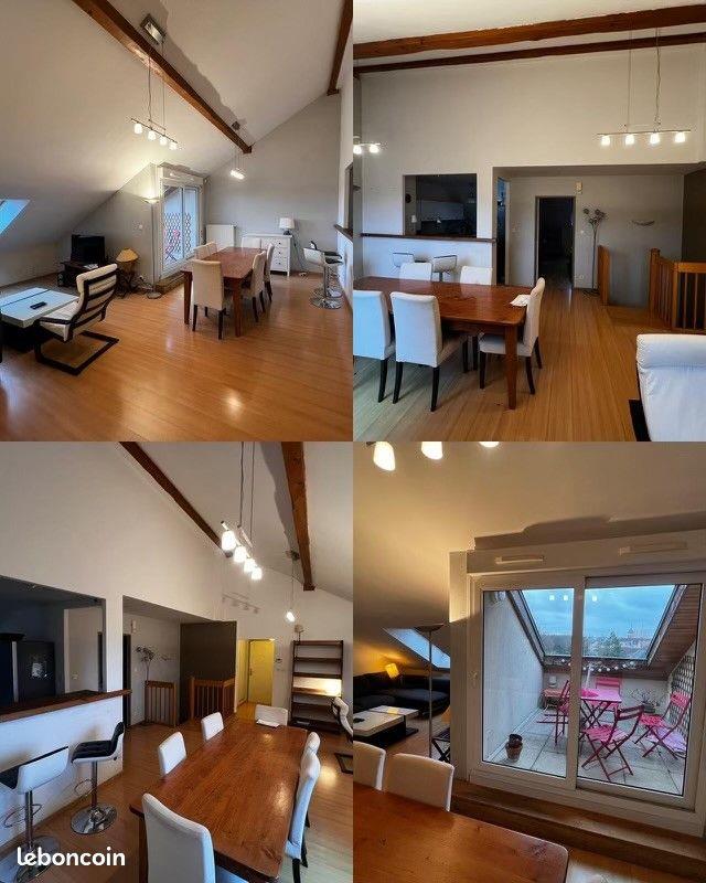 Appartement très agréable à vivre en plein centre ville (rue du Tombois, proche du conservatoire et de la place Jeanne d’Arc). Appartement 5 pièces loué meublé à partir de mi-octobre 2025 (à discuter si besoin) Lumineux, terrasse, garage fermé, ascenseur Duplex, 4ème et dernier étage, avec vue sans vis-à-vis 100m2 3 chambres (une dans la partie haute du duplex, deux dans la partie basse) Salon salle à manger avec ouverture sur terrasse au calme 2 Wc dont 1 indépendant 2 Salle de bain Cuisiné intégralement équipée (four, cuisinière gaz, lave-vaisselle, micro-ondes, cafetière, …) Lave linge Grand garage fermé en parking sous-terrain Chauffage au gaz individuel Loyer : 1 300 euros par mois, charges incluses (115 euros par mois) Pas de frais d’agence Premier contact par messagerie Leboncoin