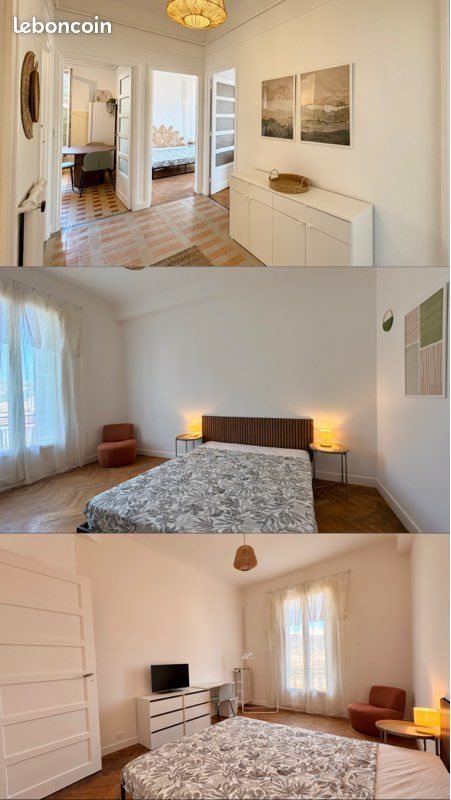 Pas d’agence. Location appartement meublé 3 pièces bas cimiez, proche du centre ville avec balcons et vue dégagé. Calme et proche de toute commodité. Disponible à partir du 12/01/26. -Une cuisine équipée (frigo/congelateur, plaques de cuisson, rangements, table à manger) -Un salon avec un canapé, télévision smart Tv. -Une salle de bain avec douche, vasque et machine à lavé. -Un Wc séparé. -Un dressing séparé. -2 chambres avec lit double 160x200cm, avec bureau et dressing. Prix: 1950€