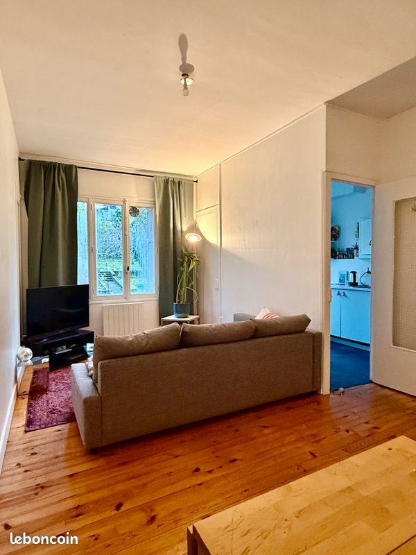 Saint-Etienne, centre-ville, à deux pas de la place du Peuple, rue Vaillant Couturier, particulier loue, au 2eme étage d'un petit immeuble, très bel appartement de 45m2 avec vue sur un grand jardin comprenant une entrée, un salon, une chambre, une belle cuisine et une salle de bains. L'ensemble des pièces donnent sur le jardin commun. Parquet toutes pièces. Belles hauteurs sous plafond. Très calme, propre et lumineux. Accès au jardin commun de 700m2. Petits potagers possibles. Rénové il y a deux an. Peu de charges. Loyer : 395€ + 15€ de charges