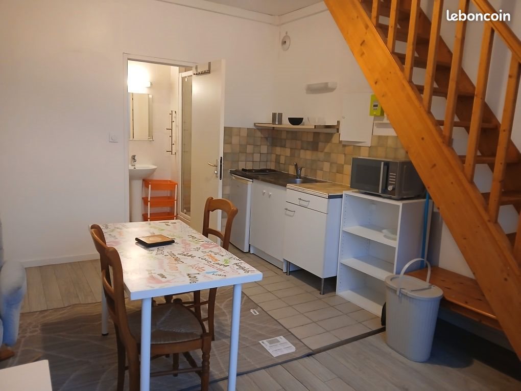 T2 Duplex Meuble bien isolé, lumineux, à 150 m des facs, près commerces, et arrêt de bus, avec kitchenette équipée, interphone, dans petit collectif rénové. Libre immédiatement - eau comprise à raison de 2 m3 par moie.
