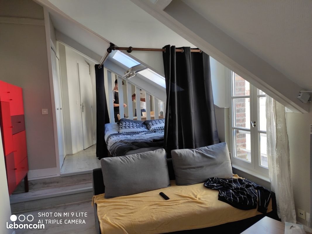 Joli studieux meublé en plein centre d'Orléans, à 200 mètres de la place du Matroi, dans une petite rue au calme. Studio de 25m² sans vis-à-vis, donnant sur cour, exposé plein est. Studio lumineux avec 2 grandes fenêtres et 2 velux. En entrant, placard de rangement avec 1 machine à laver le linge, espace bureau/table de salle à manger. 1 porte sur la droite pour accéder à la salle de bain (avec wc). Puis en continuant dans la pièce principale, espace nuit à gauche, et placard-kitchenette à droite. Puis 2 marches permettent d'accéder à l'espace sallon, avec 1 canapé et 1 commode. Loyer 645 €/mois (charges comprise, eau et poubelles).