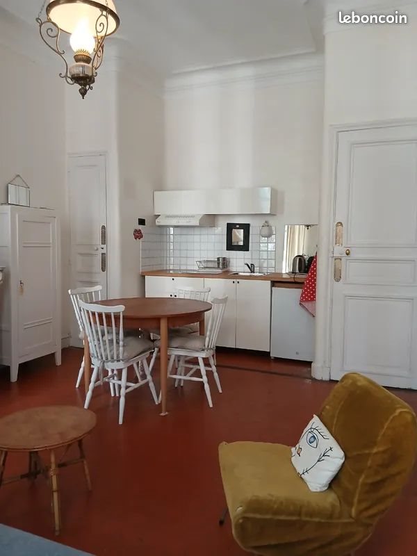 En plein centre ville, dans une rue calme et peu passante, appartement bourgeois du XIXème d'une surface de 55m2, situé au premier étage d'un immeuble haussmannien. Appartement typiquement marseillais à l'architecture de la fin du Xix ème siècle. Il est très spacieux et agréable du fait de ses quatre portes fenêtres donnant sur des balcons et d'une belle hauteur sous plafond. L'appartement est relativement calme car donnant sur une rue peu passante. Idéalement placé entre le palais Longchamp et le haut de la Canebière, vous séjournerez au cœur de la vie marseillaise. - Dans la pièce principale, avec une cheminée en marbre, vous disposerez d'un coin cuisine équipée (avec vaisselle, ustensiles de cuisine) , d'un coin salle à manger, et d'un coin salon avec un canapé convertible - La chambre est spacieuse et dispose d'un lit double ( sommier à lattes , et matelas neuf pour dos sensibles, 140 ), d'un cosy, une commode ancienne et d'un petit coin bureau. - La salle de bain au style rétro possède une baignoire et une machine à laver. - grand dressing - grand hall chauffage compris dans les charges chauffe-eau plat économique neuf d'autres photos disponibles.