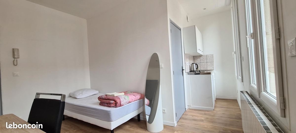Loue studio 17m² 1er étage avec douche lavabo et wc cuisine avec kitchinette et placard. Mise à disposition possible d'u lit avec sommie, une table et deu chaises.
