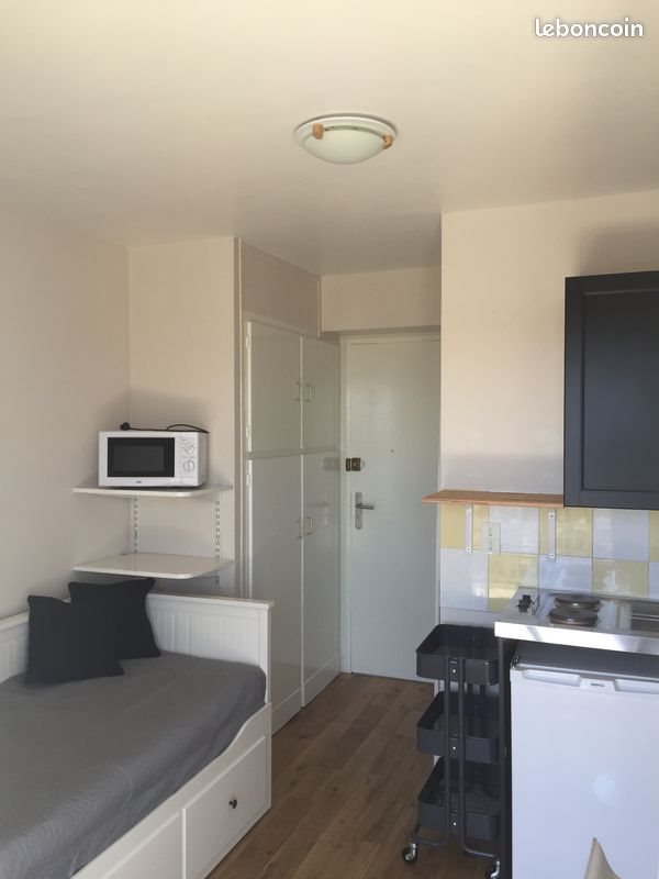A louer studio meublée , Boulevard de Lattre de Tassigny, proche place des lices, quartier calme, toutes commodités (carrefour market, coiffeur, banque, laverie, tabac...). Double vitrage, parquet chêne, kitchenette, frigo, four micro ondes, salle d'eau, nombreux rangements, lit banquette, grande terrasse (vue magnifique sur Rennes), Wc en commun sur le palier. 15Ème étage. Libre à parir du 15 janvier 2026 Loyer 395 euros, charges comprises (eau chaude + chauffage), électricité à la charge du locataire