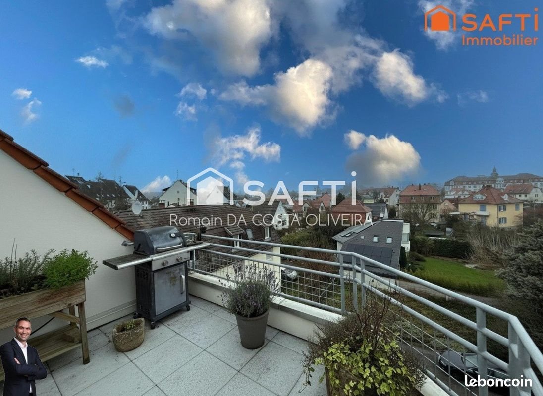 Appartement 3 pièces 120 m² Situé à Strasbourg (67100), je vous invite à découvrir ce superbe appartement traversant en attique, d’une surface habitable de 120 m², niché au dernier étage avec ascenseur d’une jolie copropriété calme et résidentielle. Vous apprécierez sa belle vue dégagée depuis ses doubles terrasses, ainsi que sa situation géographique privilégiée permettant de rejoindre le centre-ville de Strasbourg ou le Parlement européen en environ 20 minutes, que ce soit en voiture, à vélo ou via la ligne C du tramway. Cet appartement 3 pièces, lumineux et parfaitement agencé, se compose d’un hall d’entrée, d’une cuisine moderne entièrement équipée, ainsi que d’un vaste salon-séjour offrant un accès de plain-pied à deux agréables terrasses, bénéficiant d’une double exposition et d’une vue dégagée. La visite se poursuit avec une spacieuse suite parentale comprenant un grand dressing et une salle de bains équipée d’une baignoire balnéo, d’une douche et de Wc. Un bureau (pouvant faire office de seconde chambre), une buanderie ainsi qu’un Wc indépendant complètent ce bien. L’Appartement dispose également d’une cave, d’une place de stationnement privative et d’un garage. Il est équipé d’un interphone, de fenêtres en Pvc double vitrage, de volets roulants électriques et manuels, d’une Vmc collective, de la fibre optique, d’un chauffage par radiateurs électriques, d’un insert à bois dans la pièce de vie, ainsi que d’un ballon électrique pour la production d’eau chaude sanitaire. Ce bien constitue une opportunité idéale pour un premier achat ou un investissement locatif annuel ou en colocation, avec la possibilité de créer une chambre supplémentaire au niveau de la pièce de vie. Les charges de copropriété, d’un montant de 300 € par mois, comprennent notamment la provision pour l’eau, l’entretien de l’ascenseur, de la Vmc, du portail, des espaces verts, l’assurance de l’immeuble, les honoraires du syndic, ainsi que l’entretien et l’électricité des parties communes. Aucuns travaux à prévoir. Le bien comprend 4 lots, et il est situé dans une copropriété de 32 lots (les charges courantes annuelles moyennes de copropriété sont de 3600 € et le syndicat des copropriétaires ne fait pas l'objet d'une procédure citée à l'article L. 721-1 du code de la construction et de l'habitation). Les informations sur les risques auxquels ce bien est exposé sont disponibles sur le site Géorisques : Prix de vente : 299 000 € Honoraires charge vendeur Contactez votre conseiller Safti : Romain Da Costa Oliveira, Tél. : [Coordonnées masquées], E-mail : [Coordonnées masquées] - Ei - Agent commercial immatriculé au Rsac de Colmar sous le numéro 834 813 982 Surface : 120 m² A propos de la copropriété : Pas de procédure en cours Nombre de lots : 32 Date de réalisation du diagnostic énergétique : Consommation énergie primaire : 202 kWh/m²/an Consommation énergie finale : Non communiqué Montant estimé des dépenses annuelles d'énergie pour un usage standard : entre 2 230 € et 3 060 € sur les années 2021, 2022 et 2023 (abonnements compris).