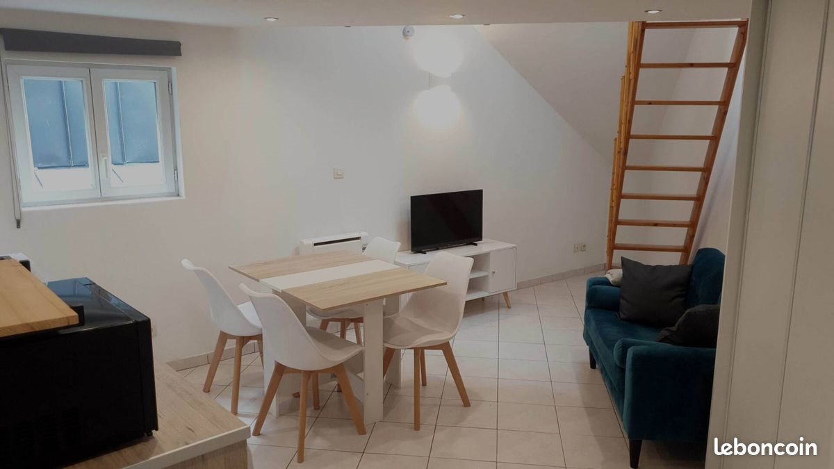 Au calme sur cour intérieure, appartement en duplex, rue Cauchoise. Au 3ème étage sans ascenseur d'une maison ancienne, en hyper Centre de Rouen Rive Droite 10 min à pieds de la gare Sncf de Rouen 10 min à pieds de la Faculté de Droits proche de l'arrêt de Bus Teor Il se compose, à l'entrée d'un séjour / cuisine de 14m² Carrez (16m² au sol), et à l'étage, d'une chambre en mezzanine (9,85m² au sol, 6,2m² Carrez) ainsi qu'une salle de douche et Wc. Surface totale : 28,93 m² au sol / 23 m² loi Carrez Equipements : cuisine équipée (plaques vitro, grille-pain, machine à café/thé, réfrigérateur, bouilloire, fer à repasser, vaisselle...), canapé, Tv 32", lave-linge, radiateurs à inertie, linge de lit, linge de toilette, vrai lit 2 places 140 x 190 avec matelas confortable et sommier à lattes... Appartement équipé de la fibre. Chauffage individuel électrique Loyer : 585 €/mois Charges : 25 € (comprend eau froide, charges de copropriété, Taxe d'Enlèvement des Ordures Ménagères) Dépôt de garantie : 2 mois de loyer Hc 1170 € Direct propriétaire : pas de frais complémentaire (bail, agence, visite, état des lieux) Dossier de demande de location : - pièce d'identité valide - justificatif de domicile - justification de situation professionnelle - justificatif de ressources - si ressources mensuelles nettes