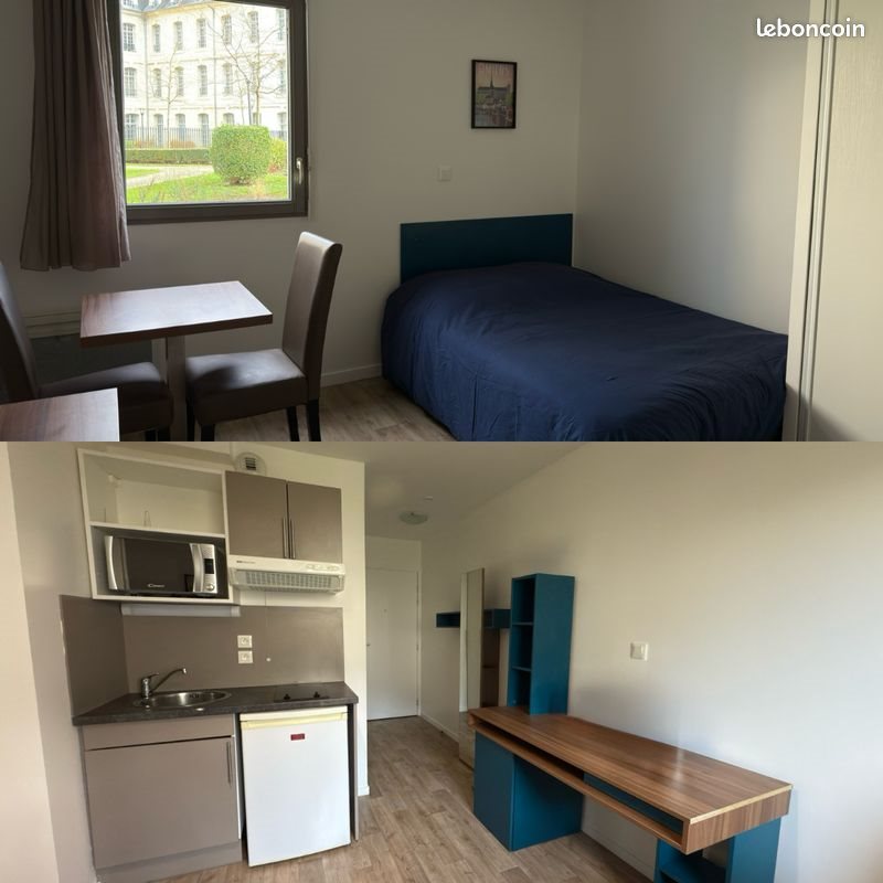 Studio meublé de 19 m2 disponible à partir du . Situé au rez-de-chaussée d’une résidence sécurisée, côté cour. À 5 minutes à pied de la gare et du centre-ville d’Amiens. Récemment rénové, studio fonctionnel : pièce à vivre avec cuisine équipée (réfrigérateur, plaques de cuisson, micro-ondes, vaisselle et ustensiles de cuisine), lit double 140x190, bureau et salle d’eau avec toilettes. Laverie et local vélo disponibles dans l’immeuble. Location directe propriétaire sans frais d’agence. Loyer : 500 euros / mois charges comprises hors électricité personnel. Sont compris dans les charges : eau froide, eau chaude, électricité et entretien des parties communes, wifi.