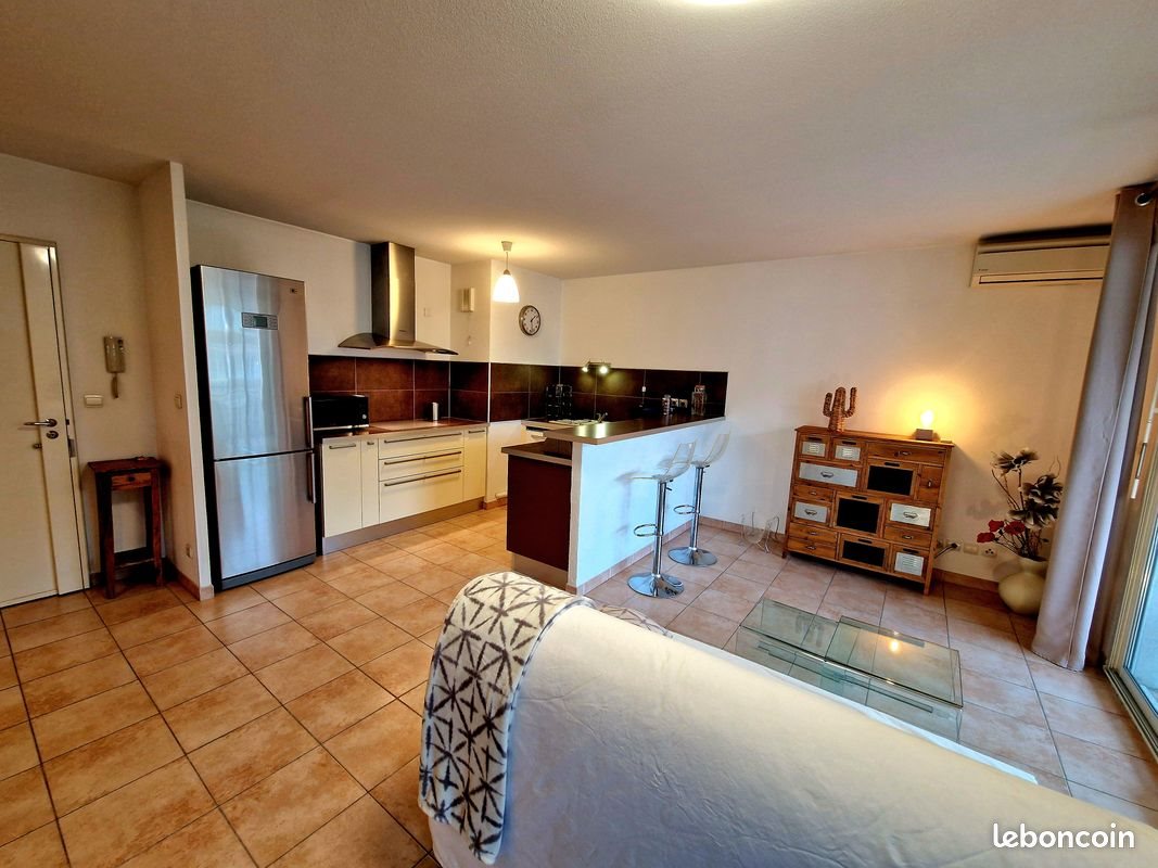 Appartement 3 pièces modifié à la construction en 2 pièces de 51 m² : Secteur Toulon Ouest, Bon Rencontre . Appartement Meuble situé au 3ème étage avec ascenseur. Porte blindée et interphone. Il se compose d'une entrée avec Placard intégré, d'une cuisine aménagée et équipée (four, plaque, hotte, réfrigérateur lave vaisselle ) ouverte sur le salon / séjour équipée d'une climatisation et donnant accès à une terrasse de 8m2, d'une chambre avec un placard intégré, d'une salle d'eau avec lave linge et d'un Wc indépendant. Possibilité de louer en plus le garage pour 50 €. Bien disponible de suite. Date de la réalisation du diagnostic énergétique : J'ai confié la gestion de cet appartement à l'agence Grech Immobilier de Toulon. Autres photos disponibles