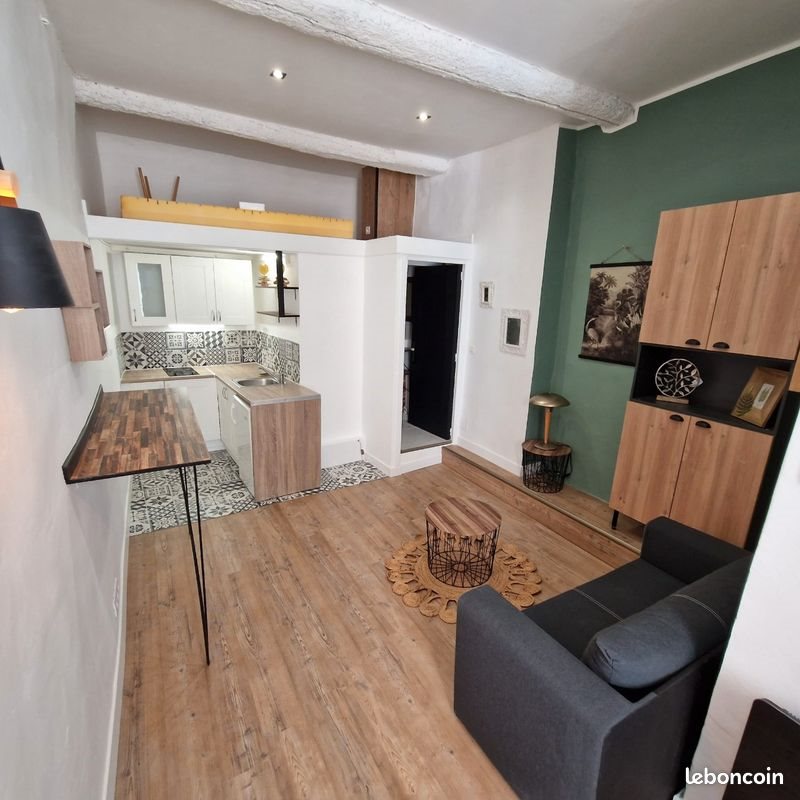 A louer joli studio meublé 22m2 avec mezzanine au 1er étage sur une place au centre ville historique d Aix-en-Provence Pièce de vie lumineuse avec grande fenêtre, coin snack bar avec tabourets, canapé convertible. Cuisine équipée avec vaisselle fournie,plaques vitrocéramiques,frigo top,micro-ondes et machine à café. Salle d eau avec douche et wc Chauffage électrique Draps et serviettes fournis Studio fonctionnel, proche de tous les centres d intérêt de la ville Électricité, wifi,assurance et charges comprises Location au mois ou à la semaine