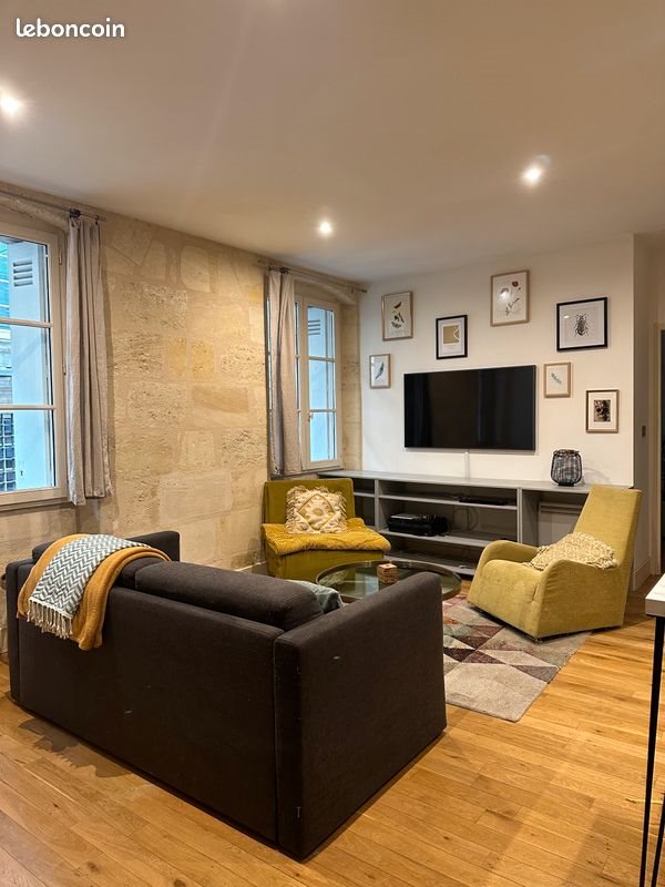 Appartement meublé de 83 m² disponible immédiatement. Entrée privative permettant de garer des vélos. Situé au premier étage. Grand salon avec cuisine américaine équipée, incluant un frigo américain. Première chambre avec salle de bain attenante. Deuxième chambre avec salle de douche. Laverie avec lave linge & sèche linge Nombreux rangements dans l’ensemble du logement. Dpe classé en catégorie D