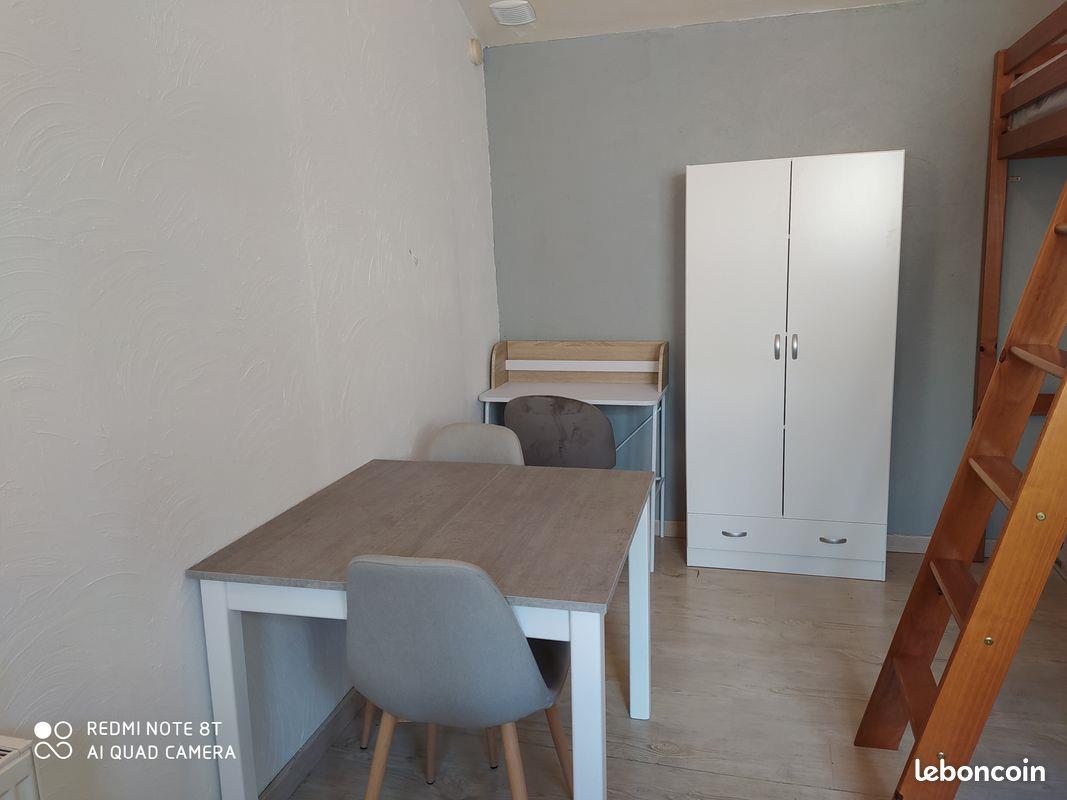 Secteur Noyon Meuble à lumineux à louer de type Studio, d’une surface de 15 M² en bon état, au Rdc d’un immeuble sécurisé en monopropriété , rue Enguerrand à Amiens, quartier calme Emplacement idéal : proximité commerces, à 10 min de la gare/centre-ville Il est composé de - 1 pièce à vivre avec cuisine aménagée et équipée ( plaques de cuisson électriques, placards, évier, frigo) + lit en mezzanine - 1 salle de bain (douche meuble vasque, Wc) - 1 cour commune - Meublé (table/chaises/lit / meuble /bureau / vaisselle …) Il est équipé de volets roulants manuels Prix : loyer 340 €+ charges 65€ (eau +Edf + chauffage + entretien communs + minuterie)