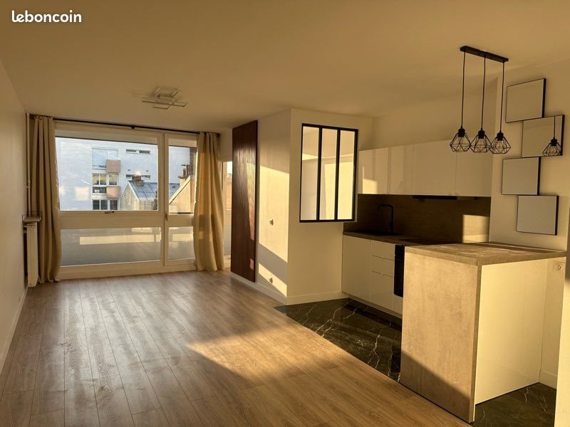 Appartement refait à neuf (parquet & carrelage, peinture, plomberie, électricité), belles prestations, moderne et très ensoleillé avec vue sur cour intérieure arborée, calme et sans vis à vis. Au 5ème étage avec ascenseur, un appartement non meublé de 35m2 composé : - d'une entrée avec placard, - d'une cuisine ouverte sur le séjour équipée de plusieurs rangements, plaque de cuisson vitrocéramique, hotte, four et réfrigérateur, - d'un séjour, - d'une salle de bains entièrement marbrée avec douche italienne et wc, - d'un espace couchage (chambre) cosy pouvant comporter un lit de dimension 140x190 cm avec porte verrière, - d'un balcon avec vue sur cour intérieure . Idéalement situé à quelques minutes à pieds du canal Saint Martin et à proximité de toutes commodités (commerce, restaurants, métro République/ Goncourt/ Colonel Fabien/ Jacques Bonsergent) Immeuble sécurisé : Digicode Interphone Code Ascenseur Gardien Chauffage collectif. Libre de suite. Garant demandé. Caution demandée. Loyer: 1.590 euros par mois, charges comprises de 100 euros (eau et chauffage inclus).