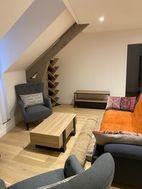 Séjour avec canapé fauteuil télévision table basse buffet table de salle a manger avec cuisine équipée lave vaisselle four micro-ondes ondes palanque induction four salle d eau machine a laver chambre 1 lit 160 x190 chambre 140x190 avec couette et oreiller