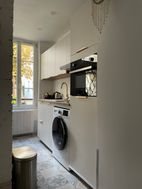 Ondes, canapé convertible de qualité, grand placard pour le rangement, au cœur du quartier Batignolles, métro 2, 14 et 13 à proximité, Rdc sur cour calme et arborée