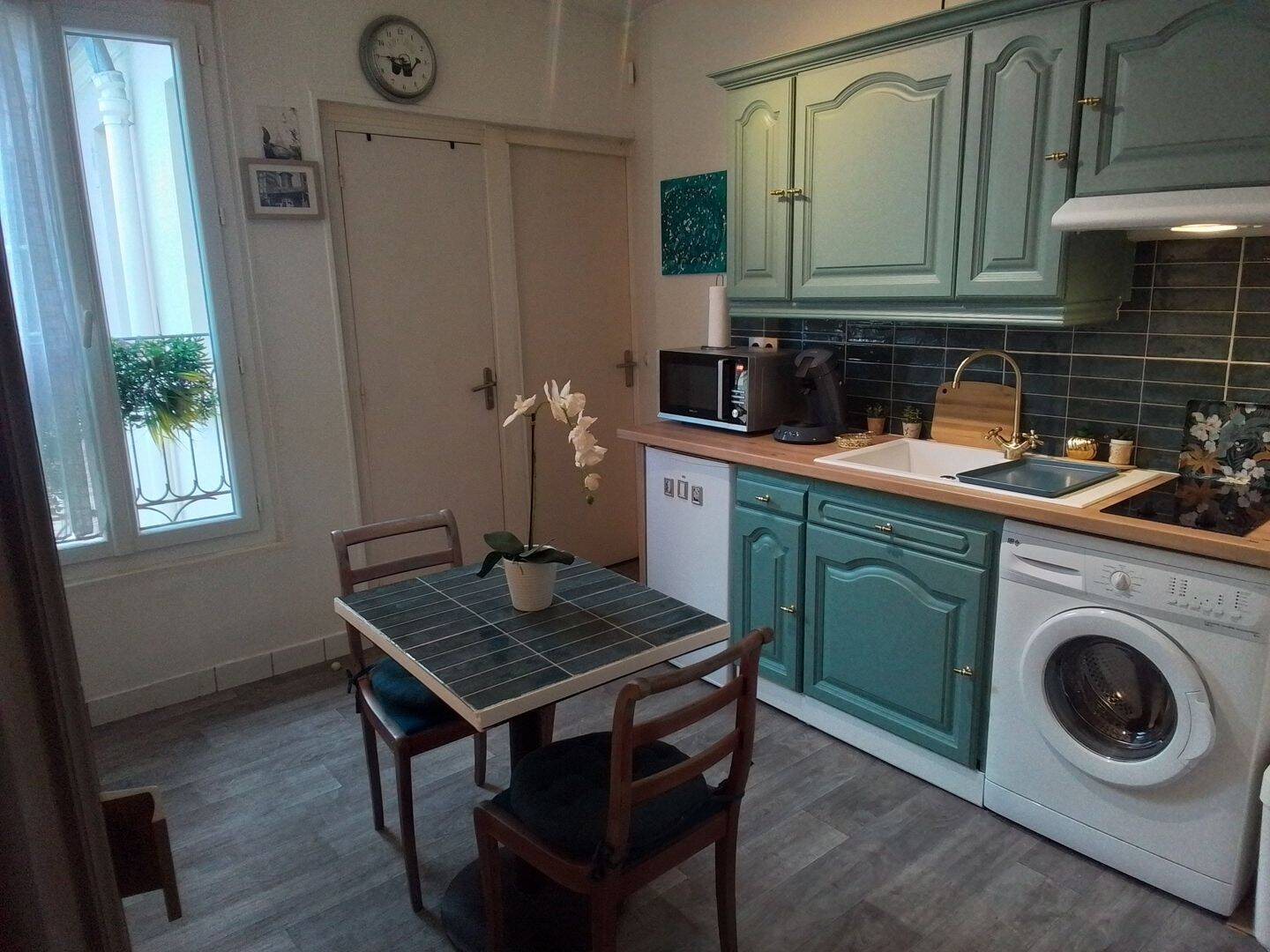 Appartement 3eme et dernier étage immeuble montmartrient ,2 pièces 25 m2 1 séjour cuisine Aménagée équipée, 1 chambre,avec coin salon.1 douche,1 Wc séparé Très lumineux, calme petite rue pietone appartemen?t donnant sur passage pavés Fenetres pvc, radiateurs éne...
