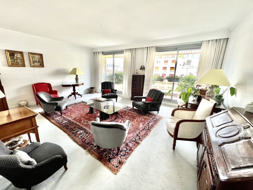 A vendre, Auteuil/Exelmans, au 7ème étage d'un bel immeuble récent, un superbe appartement de 125 m2 (113 m2 d'appartement +12m2 de terrasse /balcons pondérés). L'appartement comprend en effet une terrasse et 2 grands balcons pour un total de 25 m2 environ, d'espace extérieur. Il comprend, une belle entrée, un salon avec 2 portes fenêtres donnant sur un large balcon fleuri, une très belle cuisine toute équipée prolongée par une véranda donnant sur une terrasse de plain pied, sud-ouest, une suite parentale avec sa salle de bains donnant également sur la terrasse, ainsi qu'une autre chambre, une autre salle de bains, et une 3ème chambre donnant sur un balcon de l'autre côté, côté Exelmans, 2Wc dont un d'invités, des placards et des penderies. Une cave et un boxe et un parking complètent ce bien en parfait état, très lumineux, proche des transport et des tous les commerces.