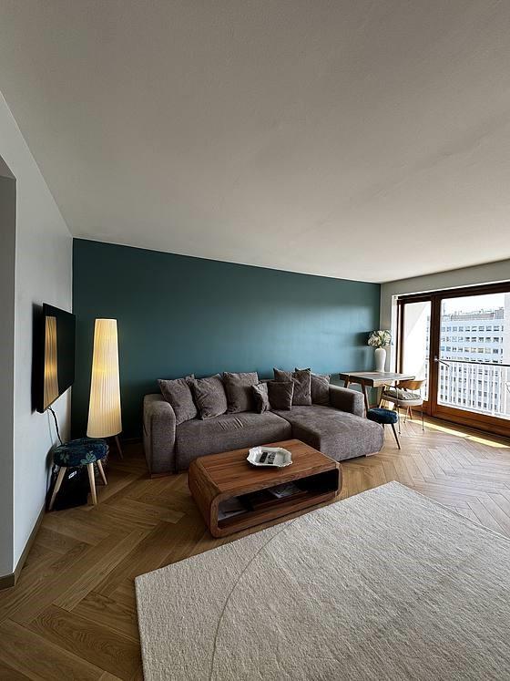 Location Meublee Lodgis (Référence : ) : Cet appartement meublé de 87 m² est situé Sq. Auguste Renoir du 14ème arrondissement de Paris et bénéficie d'une terrasse de 10 m2, d'une grande cave et d'un parking en option. L'appartement est refait à neuf avec des matériaux et équipements de haute gamme. Lumineux et sans vis-à-vis, composé de 3 pièces dont 2 chambres, il peut accueillir jusqu'à 4 personnes. Situé au 9e étage avec ascenseur et sans vis à vis, l'appartement est équipé de la climatisation et des volets électriques dans toutes les pièces. Les équipements nécessaires et de nombreux commerces et services pour un séjour réussi se trouvent à proximité (marchés hebdomadaires, école, jardin public, hôpital, gymnase, …). Il est parfaitement desservi par les transports en commun tramway, métro et bus sont au pied de la résidence. Il est à seulement 10' de Montparnasse et du Parc des expositions.