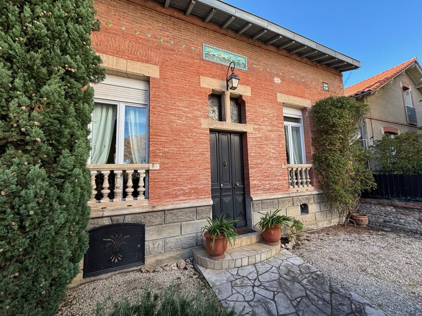 Exclusivité Bertrand Daizis Immobilier Cote Pavée, dans le meilleur secteur, celui des commerces de l'avenue Jean Rieux et de la future station de métro Côte Pavée, très belle toulousaine en briques des années 1900 avec un recul devant et jardin derrière. L'avant avec ses pilastres d'entrée et sa grille d'époque, ( portail automatisé permettant de garer une citadine ), dévoile en entrant une rare façade ornée de modénatures avec inserts de céramiques, un soubassement en appareillage de pierres surmonté d'une belle moulure, des vitraux, le tout en parfait état d'origine. La maison est construite sur sous sol intégral, dont une partie peut être aménagée pour un éventuel espace habitable supplémentaire, parfaitement sain en l'état. L'entrée de la maison dévoile une mosaïque d'époque, des moulures, une très belle hauteur sous plafond. L'ensemble du niveau a conservé sa distribution d'origine et ses éléments d'authenticité, un premier salon avec parquet cheminée, un deuxième salon avec cheminée donnant sur une terrasse exposée ouest par deux grandes portes fenêtres qui surplombe un jardin sans vis à vis, une cuisine séparée, une chambre et sa salle d'eau, un WC. L'escalier ancien mène à l'étage distribué en 3 chambres confortables et une salle de bain. Le jardin accessible par un escalier depuis la terrasse est arboré de lauriers, palmier, bouleau, yuccas, bambous est très calme et sans vis à vis. L'environnement est composé de maisons anciennes, sans immeuble.