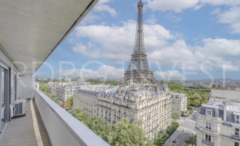 Paris 7 € – Champ-de-Mars. Dans un immeuble moderne au 11 € étage, superbe appartement haut de gamme de 123 m², entièrement neuf, climatisé, avec vue panoramique sur la Tour Eiffel. Il comprend : séjour avec cuisine Us, 3 chambres, 3 salles d'eau, 1 toilette invités, 2 grands balcons, parking et cave. Produit rare. Prestations de luxe. Vue exceptionnelle.