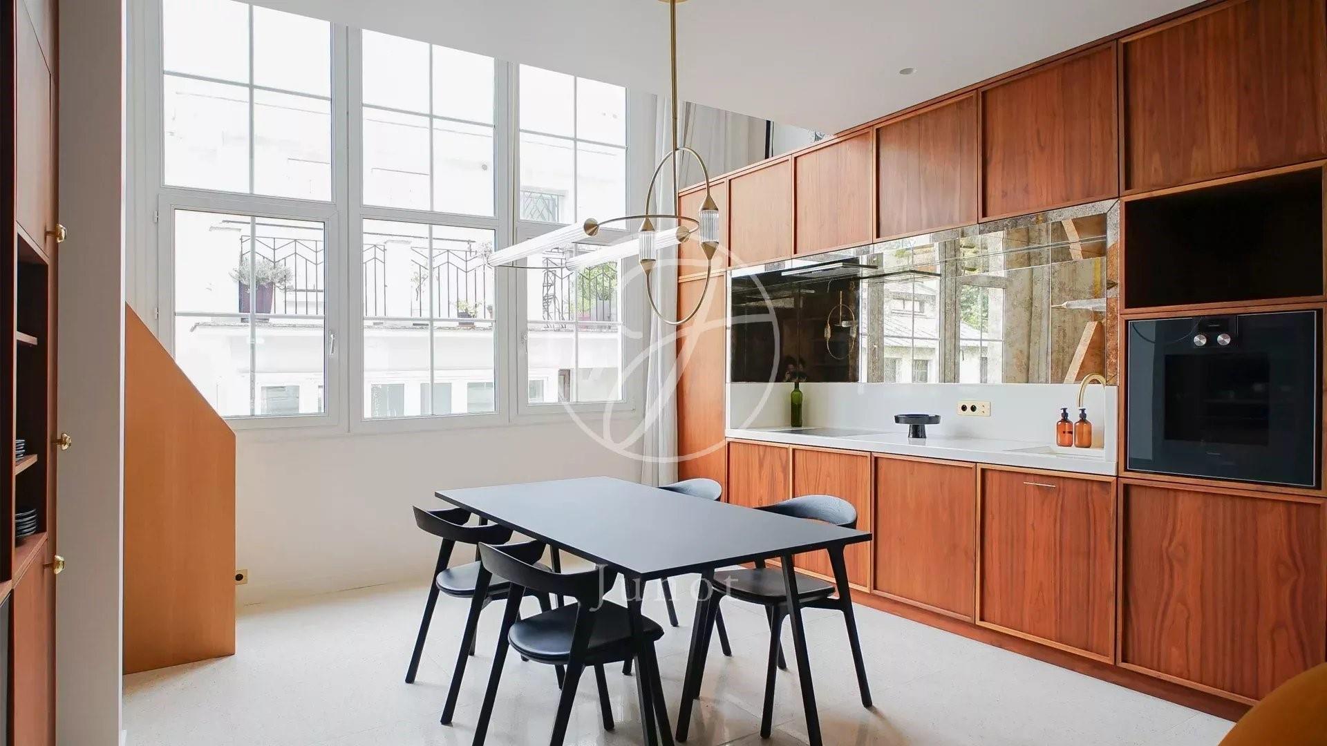 Idéalement situé sur la très prisée avenue Junot, à deux pas des Abbesses, des commerces et des transports, ce superbe duplex de 61,43m² loi Carrez, 63,33m² au sol, se niche au premier étage d'un immeuble de standing, sécurisé et parfaitement entretenu avec gardien. L'espace se compose d'une belle pièce à vivre avec cuisine ouverte aménagée et équipée. A l'étage: une chambre, un dressing, une salle de douche, ainsi que de toilettes séparées. Entièrement rénové par architecte avec des matériaux de grande qualité, ce bien rare offre des prestations haut de gamme et un cadre de vie exceptionnel. Atypique, il séduit par sa verrière spectaculaire et sa très belle hauteur sous plafond. Disponible immédiatement. BAIL Code Civil Uniquement. Honoraires bail Code civil: 10%Ht (12%Ttc) du loyer annuel Hc. Manon Exclusivité.