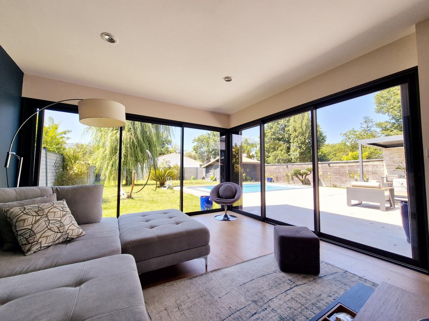 Calme, cachet et prestations haut de gamme Nichée dans un environnement paisible et verdoyant, cette superbe maison entièrement rénovée conjugue la fonctionnalité d'une maison contemporaine à une extension moderne qui met en valeur de beaux volumes et une luminosité exceptionnelle. Dès l'entrée, on découvre une vaste pièce de vie de 80 m² baignée de lumière naturelle, ouverte sur une cuisine aménagée et équipée avec des prestations de qualité. Une grande buanderie attenante complète cet espace convivial et fonctionnel. Parfaitement pensée pour une vie de famille, la maison propose quatre chambres, dont une en rez-de-chaussée. À l'étage, une suite parentale de 30 m² offre un véritable cocon d'intimité, accompagnée de deux autres chambres et d'une salle de bains. À l'extérieur, le terrain de 800 m², sans aucun vis-à-vis, dévoile un superbe espace aménagé avec une grande terrasse et une piscine, idéal pour se détendre et profiter pleinement des beaux jours dans un cadre intime et privilégié. Le stationnement est facilité grâce à un espace pouvant accueillir trois véhicules directement sur la parcelle. Cette maison est un véritable coup de cœur pour les amateurs de confort, de modernité et de tranquillité, dans un cadre de vie rare et recherché. Située à deux pas du collège Monséjour et de la ligne 2, les enfants auront le plaisir d'être autonomes. En vente seulement chez Lalanne Immobilier, contactez-nous .