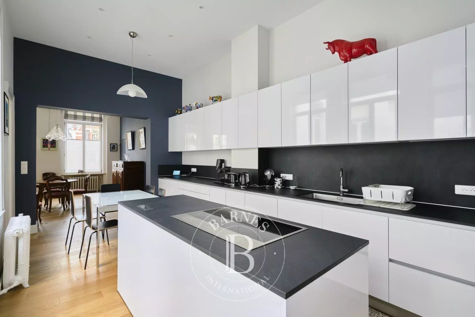 Magnifique maison de 1890, de plus de 250 m², entièrement rénovée en 2021, offre un espace idéal pour combiner vie professionnelle et vie privée. Au rez-de-chaussée, un espace professionnel parfaitement agencé : Un vaste bureau de 22 m² avec parquet en chêne massif, moulures et cheminée en marbre, parfait pour installer vos bureaux ou votre cabinet. Une pièce de 12 m² idéale pour un secrétariat ou une salle d'attente, séparé par une grande porte, on accède à la partie habitation privée avec une première chambre de 14 m² et une salle de douche ouverte sur une charmante cour. Un magnifique escalier en chêne mène aux étages supérieurs: Au premier étage, une pièce de vie lumineuse de 65 m² avec cuisine ouverte très moderne, et son cellier. Au deuxième étage, deux grandes chambres, un dressing, une salle de douche et des toilettes. Dans les combles aménagés, deux charmantes chambres supplémentaires de 10 et 9 m². La propriété bénéficie d'atouts supplémentaires sa charmante cour intérieure de 20 m². Possibilité de louer facilement un parking ou un garage à proximité. Emplacement au cœur de Lille, proche des commerces, transports, écoles et lieux de promenade. Avec son cachet authentique, ses volumes généreux et sa localisation idéale, cette maison ravira une famille ou conviendra parfaitement à d'autres projets, du co-living aux chambres d'hôtes ou fille au pair, en passant par un projet professionnel. Visite virtuelle disponible sur demande. DPE : D / Ges : D Dépenses énergétiques comprises entre 2620€ et 3600€ par an (Prix moyens des énergies indexés au 1er janvier 2021, abonnements compris) Les informations sur les risques auxquels ce bien est exposé sont disponibles sur le site géorisques :