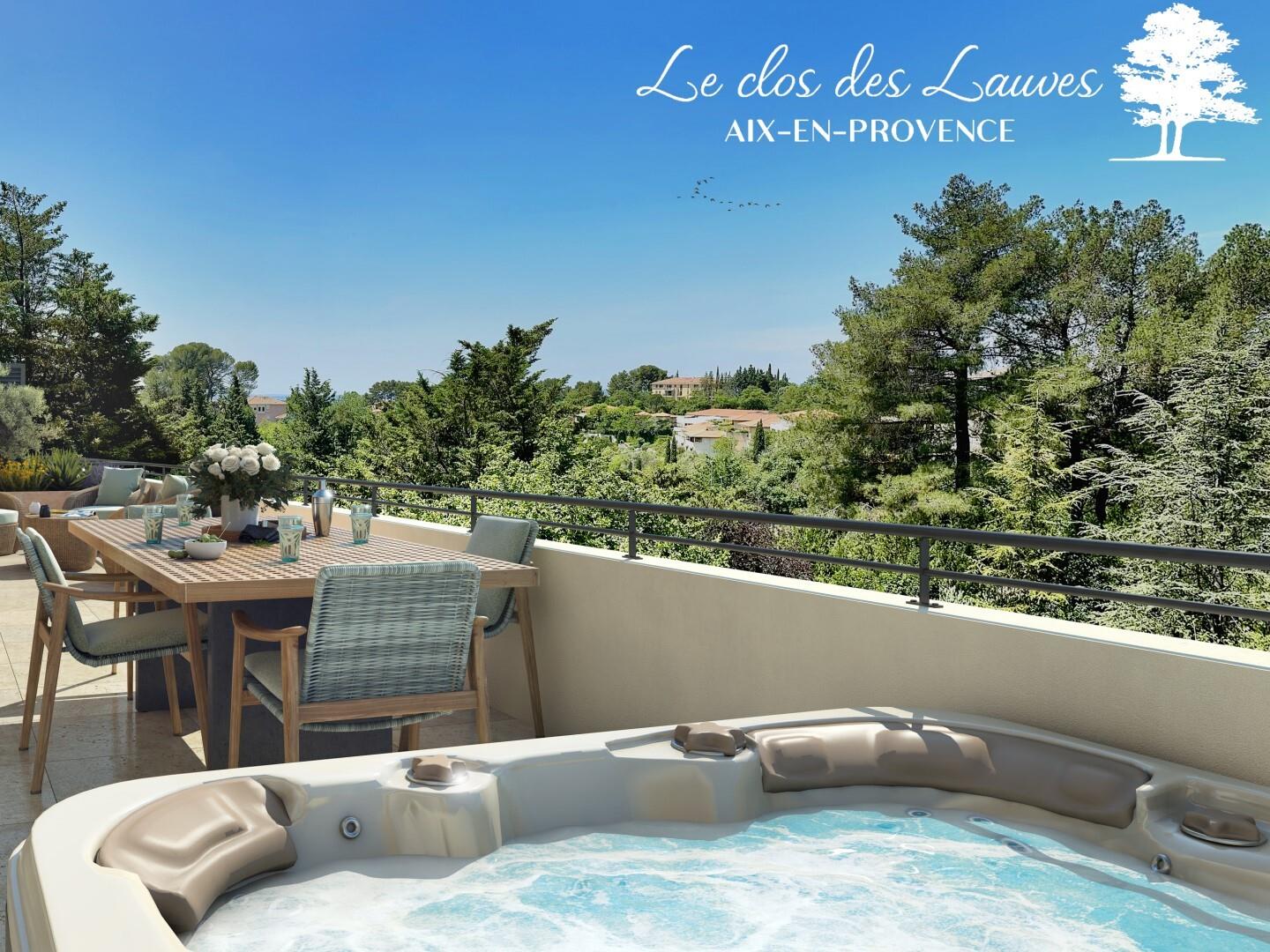 Le Clos Des Lauves : Nouvelle Residence Exclusive De 6 Logements A AIX-EN-PROVENCE. Démarrage des travaux, livraison début 2027. Encore un appartement T3 de 80m2 et un appartement T4 de 102m2 disponibles. Dans le quartier résidentiel des Lauves, au coeur d'un parc arboré, découvrez le Clos des Lauves, une petite Résidence d'exception composée de 6 logements avec vue sur la nature. Située au 88 avenue Fernand Benoît, notre nouvelle Résidence bénéficie d'un emplacement idéal entre la campagne aixoise et le centre historique d'Aix-en-Provence situé à 1,5km seulement. Tous les commerces du quotidien sont à 5 minutes de marche de la Résidence (centre commercial Bellevue). Un arrêt de bus se situe à 100 mètres et permet de rejoindre le centre-ville d'Aix en 5 minutes seulement. Situé au dernier étage desservi par ascenseur, découvrez un appartement T4 de 102m2. Spacieux et lumineux, ce logement se compose d'une entrée avec vestiaire et Wc invités, une belle pièce de vie d'environ 40m2 prolongée par une profonde terrasse avec vue dominante sur le parc de la Résidence et les reliefs aixois, une grande suite parentale avec dressing, salle d'eau et Wc privatifs, deux autres chambres avec placard aménagé dans chacune et une seconde salle d'eau avec fenêtre. Appartement triple exposition Sud/Est/Ouest. Les prestations du logements sont au diapason des lieux : Hauteur sous plafond de 2,70m, carrelage grand format en grès cérame Porcelanosa, climatisation réversible gainable, nombreux placards aménagés, appareils sanitaires haut de gamme et robinetterie design de chez Grohe, menuiseries extérieures en aluminium laqué avec volets roulants motorisés dans toutes les pièces, terrasse équipée d'éclairage, d'une prise et d'un point d'eau avec possibilité d'installer un SPA... Une opportunité rare par vivre dans un cadre arboré et intimiste aux portes du centre historique d'Aix-en-Provence. Prix de vente : 890 000€ au lieu de 930 000€ jusqu'au (fin de l'offre commerciale de lancement -10 000€/pièce). Deux larges stationnements en sous-sol inclus. Informations auprès de votre conseiller privé Gilles Schlosser - . Pierres de Collection Immobilier