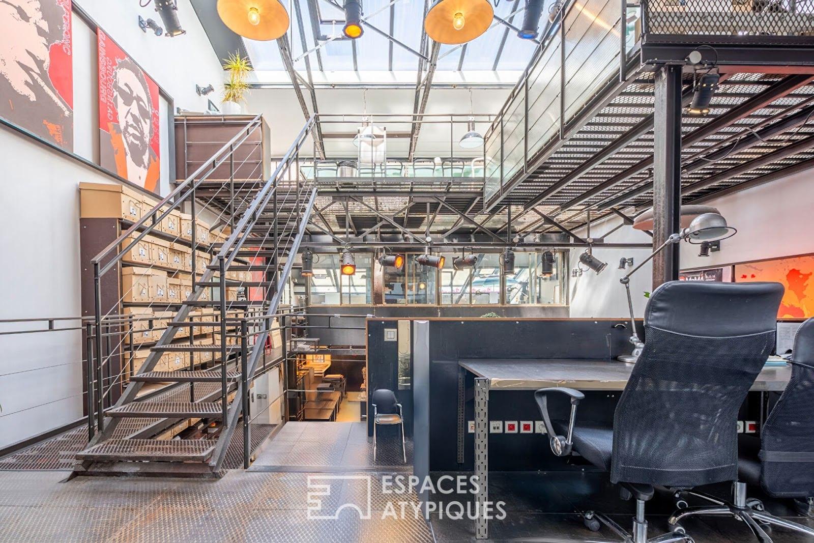 A quelques pas de la Halle Secrétan, entre le canal et les Buttes-Chaumont, ce local industriel développe une surface de 312m² au sol (264,81 m² Carrez), répartie sur trois niveaux, avec une hauteur sous plafond qui tutoie les 7,30 mètres et une terrasse en jouissance exclusive de 47m² . Occupant l'arrière d'un immeuble sur cour, au calme absolu, l'espace présente aujourd'hui une structure brute aménagée en bureau et qui pourrait être réhabilitée en habitation. Murs en béton, ossature métallique, escalier industriel et verrière zénithale composent une base solide pour un futur projet de transformation. Le volume principal, accessible depuis la terrasse en rez-de chaussée, est baigné de lumière grâce à ses ouvertures en toiture et offre un plateau libre aux proportions généreuses. Le bien peut accueillir plusieurs scénarios : un loft d'habitation avec espaces ouverts et pièces en double hauteur, un espace professionnel avec bureaux et showroom, ou encore deux unités distinctes en cas de division (sous réserve des démarches administratives nécessaires). Le changement de destination est à envisager dans le cadre d'un projet global. L'ensemble offre un potentiel rare dans ce secteur recherché du 19e arrondissement en plein essor proche des transports, des commerces de bouches, des restaurants et lieux de vie sportifs (salle d'escalade, piscine Pailleron) et culturels. Un lieu brut, aux volumes parlants, pour une page à écrire en grand format. Bien soumis au statut de la copropriété. Métro : Jaurès, Bolivar, Colonel Fabien CLASSE Energie : C/ Classe Climat : C. Montant des dépenses annuelles d'énergie 2023 : 2968 euros (abonnement compris). Les informations sur les risques auxquels ce bien est exposé sont disponibles sur le site Géorisques : Contact : Magaly - Rsac : 908 772 452 PARIS Copropriété de 46 lots (Pas de procédure en cours). Charges annuelles : 2762 euros. Magaly Leygnac (Ei) Agent Commercial - Numéro Rsac : 908 772 452 - Paris.