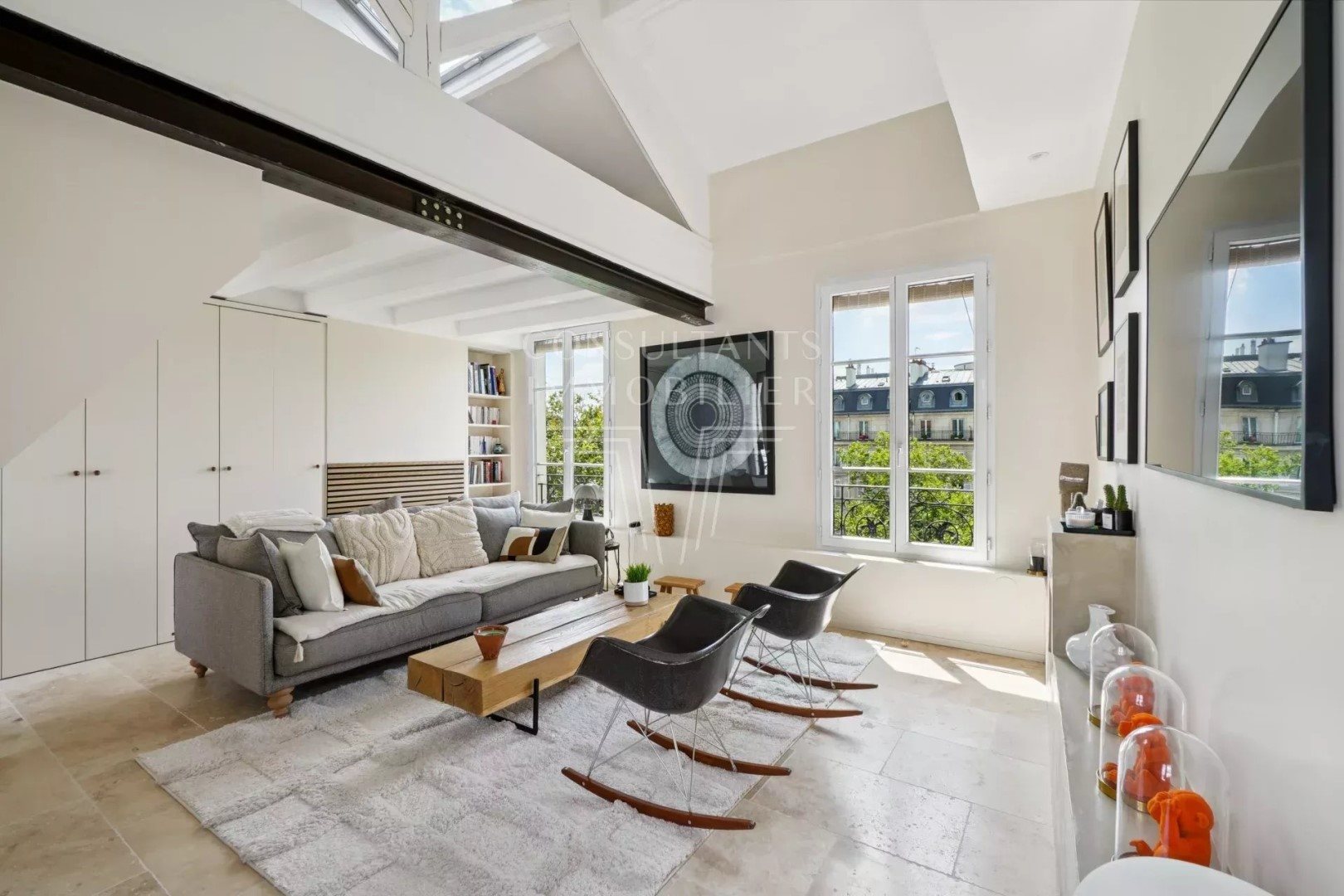 Exclusivité. Paris Xi. Oberkampf/Folie Mericourt Appartement Au Style Loft En Étage Élevé. Excellent État. Vue Dégagée. À proximité immédiate du boulevard Richard Lenoir, des transports et des commerces, au cinquième étage d'un immeuble ancien : Appartement style loft entièrement rénové par un architecte bénéficiant de beaux matériaux de qualité. Disposant d'un plan optimisé, il comprend une entrée, une vaste pièce de vie avec vue entièrement dégagée sur verdure, une cuisine indépendante, deux chambres en mezzanine, une salle de douche et des toilettes séparées. GROUPE Consultants Immobilier