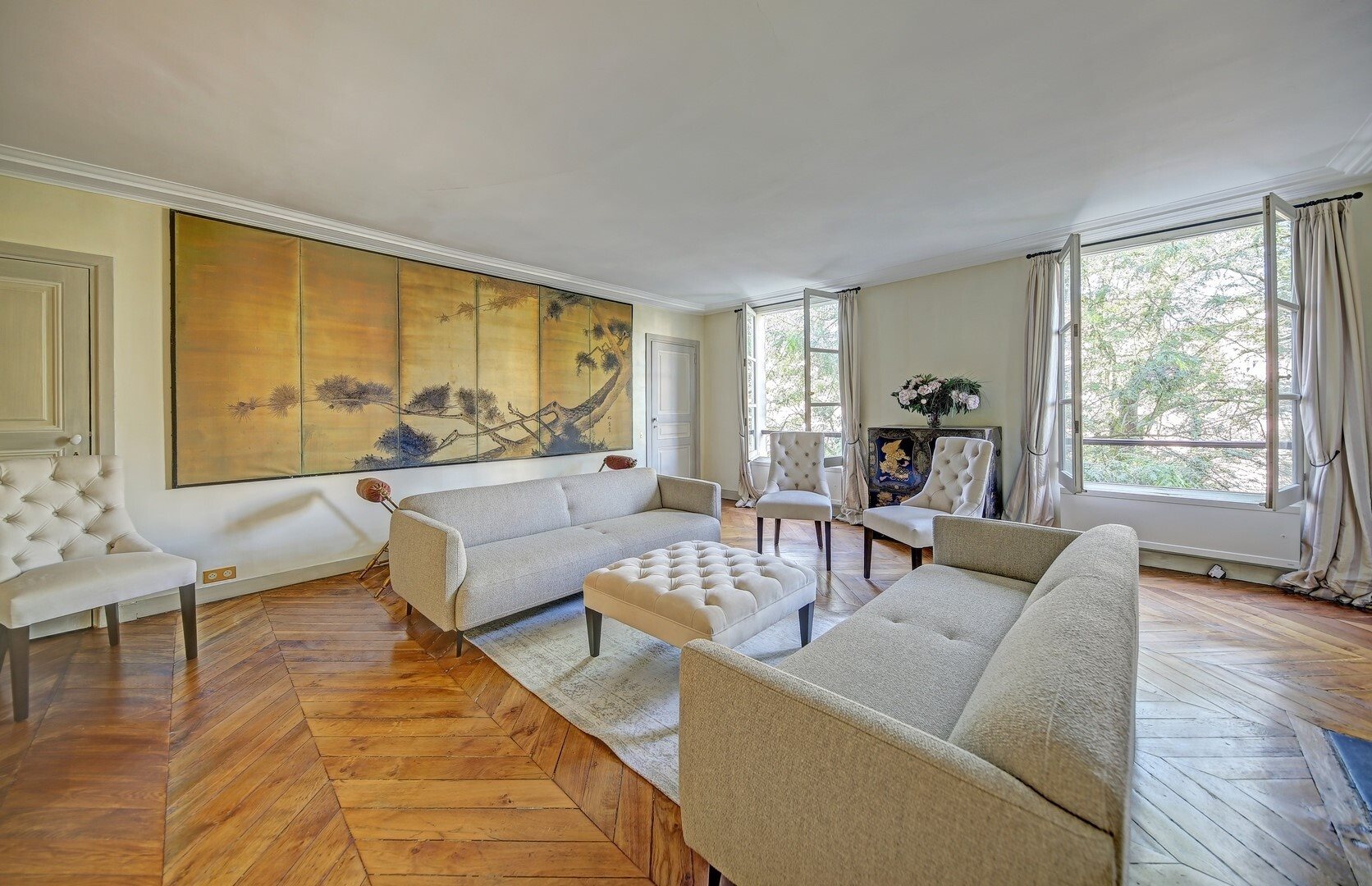 Appartement familial meublé de prestige – 203 m² – Saint-Germain-des-Prés (Paris 6e) ARSÈNE Immobilier vous propose ce magnifique appartement familial meublé, situé dans l’un des quartiers les plus recherchés de Paris : Saint-Germain-des-Prés. Niché en étage élevé d’un superbe immeuble Louis Xv du XVIIIe siècle, cet appartement d’une luminosité exceptionnelle bénéficie d’un calme absolu, entre cour pavée et jardins privatifs. Son charme parisien opère immédiatement : parquet en point de Hongrie, cheminées d’époque, hauteurs sous plafond et une vue dégagée sur la verdure. D’une surface de 203 m², il se compose de : Un vaste salon de 35 m² surplombant les jardins, Une salle à manger élégante de plus de 30 m² donnant sur la cour intérieure, Une cuisine séparée et entièrement équipée, 4 chambres, 3 salles de bains, 1 salle d’eau et 4 Wc (dont un sanibroyeur). Un véritable havre de paix en plein cœur de Saint-Germain, idéal pour une résidence secondaire ou une location d’entreprise (bail code civil). Adresse rare – Calme, charme et élégance au cœur du 6e arrondissement. Location uniquement en bail Code Civil ou résidence secondaire. Honoraires agence : 12 % du loyer annuel charges comprises. English version / Furnished Family Apartment – 203 sqm – Saint-Germain-des-Prés, Paris 6th ARSÈNE Immobilier presents this beautiful furnished family apartment ideally located in the heart of Saint-Germain-des-Prés, one of the most prestigious districts in Paris. Set on a high floor of an elegant 18th-century Louis Xv building, this bright and quiet property enjoys charming open views over private gardens and inner courtyards. With its original parquet floors, fireplaces, and refined atmosphere, this apartment perfectly embodies Parisian elegance. Offering 203 sqm of living space, it features: A 35 sqm living room overlooking peaceful gardens, A 30 sqm dining room facing the inner courtyard, A fully equipped separate kitchen, 4 bedrooms, 3 bathrooms, 1 shower room and 4 toilets (including 1 sanibroyeur). A rare property combining authentic charm and contemporary comfort, ideal for a company lease or secondary residence. Prestigious address – Bright, quiet, and full of character. Lease type: Company or secondary residence (Code Civil). Agency fees: 12% of annual rent incl. Charges.