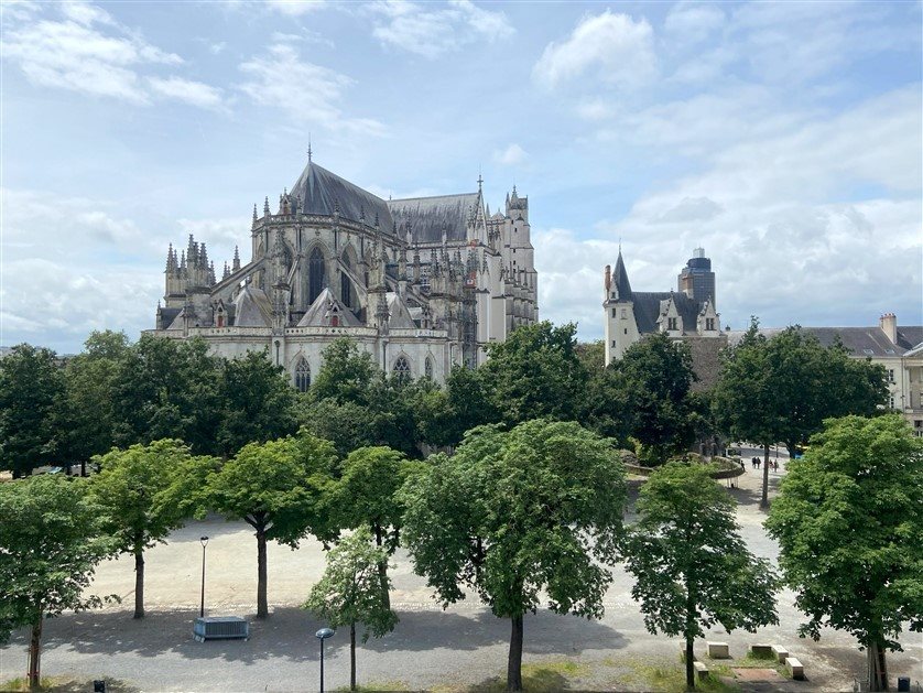 Cathédrale - Place de l'oratoire Au troisième étage d'un immeuble ancien de standing, appartement de 203 m² composé : Hall d'entrée, d'une double réception 53 m² offrant une très belle vue sur la cathédrale, Exposé Ouest et sans vis-à-vis, Cuisine repas, 4 chambres dont une suite principale, une salle d'eau supplémentaire avec Wc indépendant. Deux caves en annexes. Tolérance de stationnement dans la cour, possibilité d'acquérir un garage dans l'immeuble. Appartement traversant, dans un quartier familial et recherché.