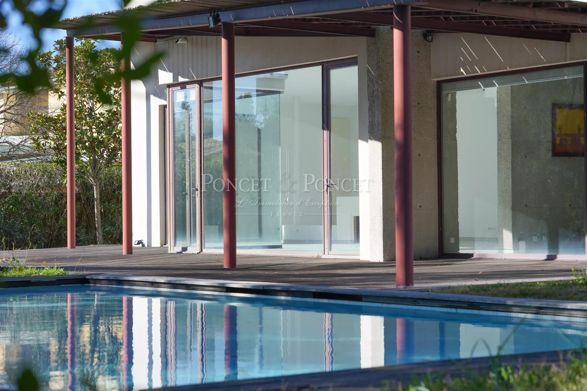 Contact Ivan Buchel : Située sur les hauteurs de Montpellier, à proximité des hôpitaux et du tramway, cette villa d'exception au design audacieux s'étend sur 240 m². Elle comprend 4 chambres, un vaste salon, une grande cuisine familiale, et se distingue par un volume impressionnant. Les matériaux nobles tels que le bois, le béton, le métal et la pierre sont sublimés par la lumière naturelle et l'ampleur des espaces. La façade entièrement vitrée offre une vue panoramique sur le jardin et la piscine, dans un cadre paisible. Le soir, les éclairages du jardin s'harmonisent avec ceux de la ville, créant une atmosphère magique. Un emplacement unique, désormais introuvable, pour cette villa conçue par un architecte avant-gardiste. Dossier disponible sur demande.