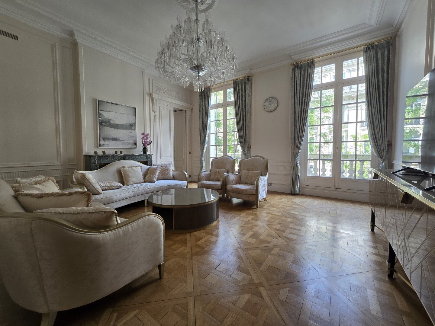 Immeuble de grand standing bénéficiant des services d'un gardien, appartement de standing comprenant: entrée, séjour, salle à manger, 3 suites parentales toutes munies de salle d'eau et toilettes, cuisine aménagée et équipée, toilettes séparées