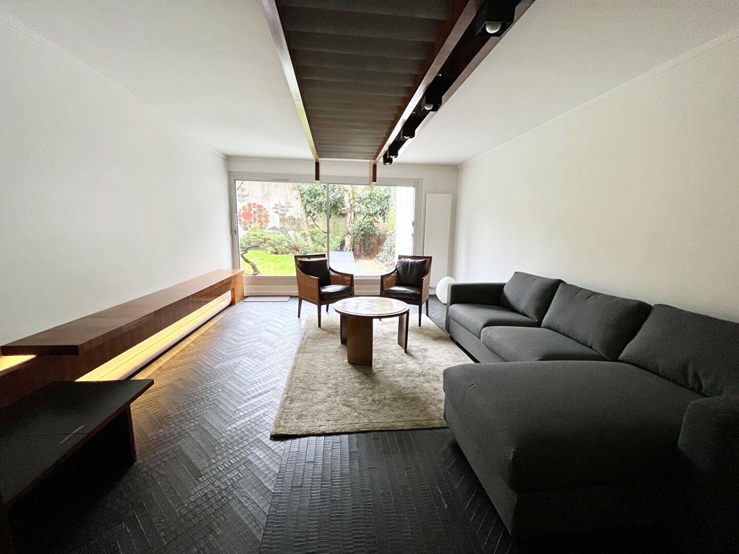 Boulogne Billancourt/rue de Bellevue. Dans un bel immeuble classé au Rez de Chaussée avec grand jardin arboré de 150 m2 ,un appartement meublé conçu par un architecte de renom. Ce bien est composé d'une vaste entrée avec placards, d'une grande cuisine dînatoire entièrement équipée ouverte sur une terrasse, un séjour ouverte sur le jardin, deux chambres, une salle de douche et des Wc indépendants, une grande chambre parentale avec de nombreux placards et une salle de bains avec baignoire et douche et Wc. 3 emplacements de parking et une cave. Chauffage et eau chaude collectifs. Métro : Pont de Sèvres (Ligne 9). Uniquement bail Code Civil ou Résidence secondaire.