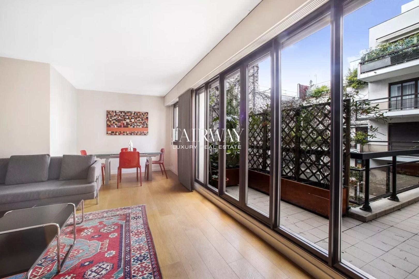 Fairway Luxury Real Estate vous propose cet élégant appartement de 122 m², situé au 4 € étage d'un immeuble récent avec ascenseur et gardien, à quelques pas de la station Châtelet (lignes 1, 4, 7, 11, 14). Idéalement situé au cœur de Paris, ce bien bénéficie également de la proximité des quartiers animés de Montorgueil et de la Fondation Pinault. Entièrement rénové avec des matériaux de qualité en 2019, cet appartement en très bon état offre une luminosité exceptionnelle grâce à ses quatre expositions et à ses larges ouvertures. Il se compose d'une entrée accueillante desservant une belle pièce de réception lumineuse avec accès à un balcon offrant une vue dégagée, ainsi qu'une cuisine italienne haut de gamme, entièrement équipée et aménagée. L'espace nuit comprend trois chambres spacieuses avec placards et dressings intégrés, dont une suite parentale disposant d'un accès direct au balcon-terrasse. Vous y trouverez également une salle d'eau moderne et une salle de bain élégante avec toilettes. Ce bien rare inclut également une terrasse plein sud de 9 m² donnant sur une zone piétonne et un balcon-terrasse sur jardin de 15 m², offrant un cadre de vie calme et verdoyant au cœur de la capitale. Des prestations supplémentaires telles qu'un local à vélos et la présence d'un gardien complètent ce bien d'exception. Découvrez également notre sélection exclusive de propriétés au Pays Basque, à Lisbonne et à Dubaï, offrant des opportunités uniques pour tous les budgets.