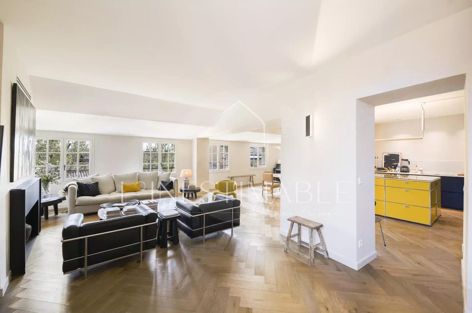 En haut du célèbre Cours Mirabeau, plein cœur du centre ville d’Aix en Provence, dans un bel immeuble entièrement rénové, cet appartement duplex de standing de 160 m² est proposé à la location meublée. Il est composé d’une pièce de réception très lumineuse qui s'ouvre sur une cuisine contemporaine parfaitement équipée avec salle à manger. On y trouve 3 belles chambres dont une Master, 2 salles de bains, 2 wc indépendants, une buanderie, et beaucoup de rangements. Une terrasse avec vue sur les toits de la ville complète ce bien rare à la location. L’appartement est très calme et sans aucun vis à vis. Le loyer de 4500 €/mois comprend l'accès internet, les dépenses d'eau et d'électricité, et la fourniture du linge de maison.