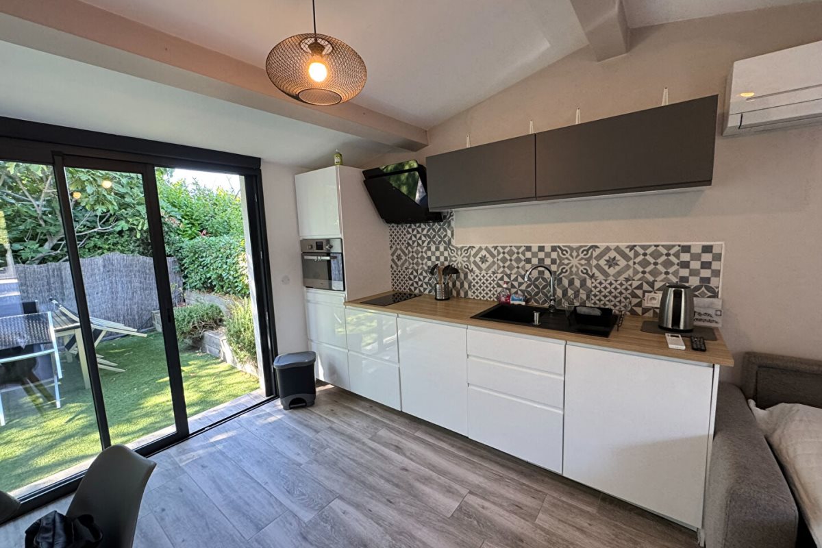 Aix nord Puyricard, situé dans une propriété privée, appartement 2 pièces meublé en rez-de-jardin, entièrement rénové. Cuisine équipée ouverte sur séjour, une chambre, salle d'eau/wc. Climatisation. Jardin clos privatif. Loyer : 690 € - Charges : Forfait 100 € (eau, électricité, Teom, accès wifi inclus) - Dépôt de garantie : 1380 € Afficher le téléphone