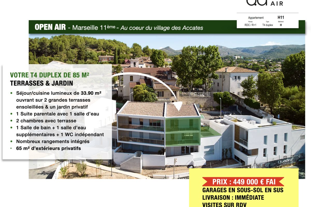 Une opportunité qui ne se représentera pas. Suite à un changement de projet de notre client, nous avons le plaisir de vous proposer en retour à la vente ce duplex 4 pièces neuf, déjà livré : 86 m² habitables baignés de lumière 65 m² d’extérieurs plein sud : trois terrasses + jardin avec vue dégagée Pensé comme une maison de ville indépendante, ce bien allie confort moderne et douceur de vivre. En deux mots, notre résidence Open Air Programme intimiste de seulement 20 logements Environnement verdoyant et calme absolu Le + : Votre accès gratuit et privilégié au Tennis Park pendant 2 ans (tennis & piscine) Proximité immédiate de la place de l’Église et des commerces de la Valentine Connexions rapides aux principaux axes autoroutier Ce duplex est livré et disponible dès aujourd’hui. Contactez-moi dès maintenant tout complément d’information et/ou organiser une visite. Afficher le téléphone