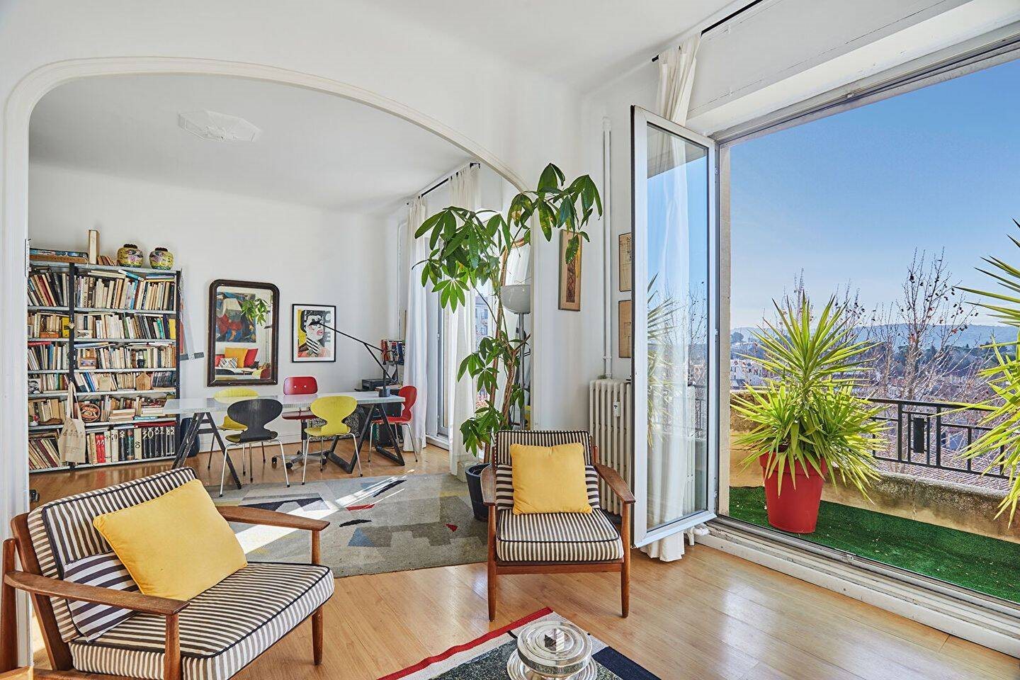 Aix-En-Provence - Centre ville - Dernier étage avec ascenseur - Dans un immeuble ancien de style art déco. L'immobilière Sextius Mirabeau vous propose un appartement 4 pièces traversant Est/Ouest comprenant une belle entrée desservant toutes les pièces de l'appartement, un séjour double ouvrant sur un petit balcon, une cuisine indépendante avec un petit extérieur, deux chambres ( 14 et 10 m² ), une salle de bain, un wc séparé. Rangements L'appartement profite d'une grande hauteur sous plafond et d'une belle vue dégagée sur les toits de la ville. Certains travaux de rafraichissement seront à prévoir. Copropriété de 12 lots (Pas de procédure en cours). Charges annuelles : 3313.00 euros. Afficher le téléphone