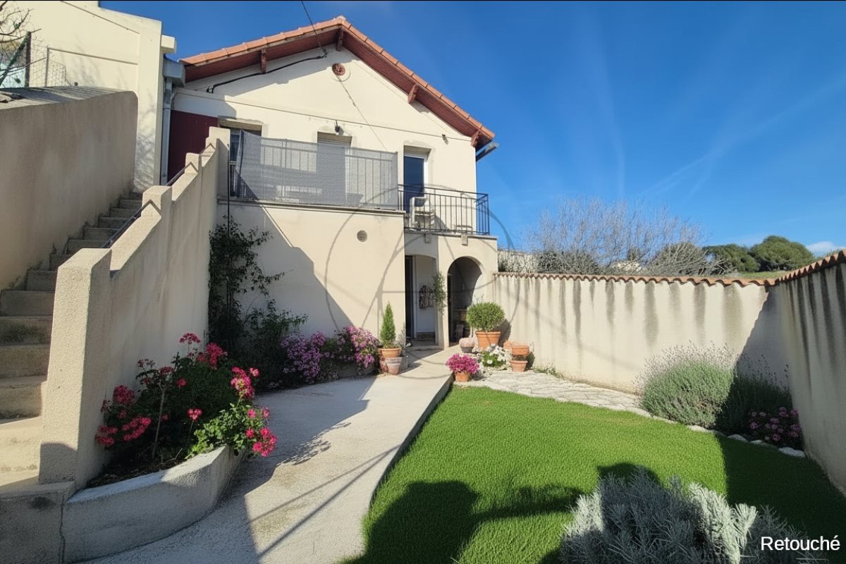 Située dans le secteur résidentiel et très recherché de Verduron, cette maison individuelle de 90 m2 au sol est un véritable havre de paix qui surplombe la ville. Dès l'entrée, un grand placard de rangement fonctionnel facilite votre quotidien avant de s'ouvrir sur une pièce de vie lumineuse. Ce double séjour avec cuisine américaine d'environ 30 m2 profite de belles hauteurs sous plafond et d'une exposition sud-est idéale pour capter la lumière dès le matin. Le confort est total avec une pompe à chaleur dans toute la maison, du double vitrage et des volets roulants, garantissant qu'aucun gros travaux n'est à prévoir. L'extérieur est le coeur battant de cette propriété : une terrasse plein sud offre un panorama mer imprenable, dominant un jardin en restanques de 200 m2. Le bien dispose d'un potentiel rare grâce à deux dépendances avec fenêtres situées sous la maison, parfaites pour aménager des chambres supplémentaires, un bureau ou une salle de jeux selon vos envies. Le coin nuit actuel se compose de deux chambres de 10 et 11 m2 et d'une salle d'eau de 5 m2. Cette maison, saine et parfaitement entretenue, représente une opportunité rare dans ce quartier paisible. Un bien à visiter sans tarder pour saisir tout le potentiel de ce cadre de vie privilégié. Pour tout renseignement supplémentaire Mr Mendil Kami Agent commercial Rsac 909 688 450 Taxe Foncière 473EUR/an Dpe : B (105kWh/m2/an) Ges: A (3 kgCO2/m2/an) Estimation des coûts annuels: entre 650Eur et 940Eur par an, prix moyens des énergies indexés sur les année Prix 325 000Eur Hai à la charge du vendeur (honoraire agence 4%) Les informations sur les risques auxquels ce bien est exposé sont disponibles sur le site Géorisques : Afficher le téléphone