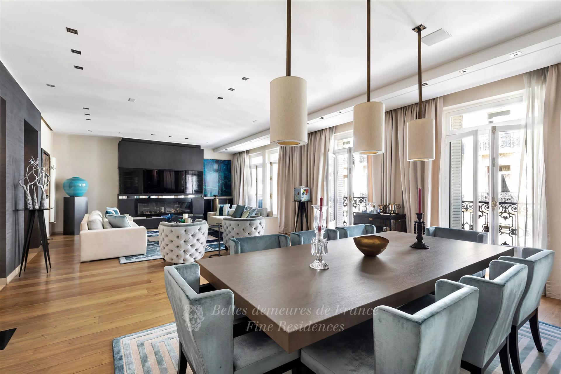 Au coeur du Triangle d'Or, dans une rue calme et chic près de l'avenue George V, appartement climatisé en excellent état situé au 3ème étage d'un immeuble haussmannien de grand standing avec gardien. Il comprend une entrée, une double réception et une cuisine dînatoire entièrement équipée côté rue, et côté cour, une suite parentale avec dressing et salle de bains, deux autres chambres, deux salle de douches. Rénovation de grande qualité par un architecte de renom, climatisation dans tout l'appartement. Une cave complète ce bien.