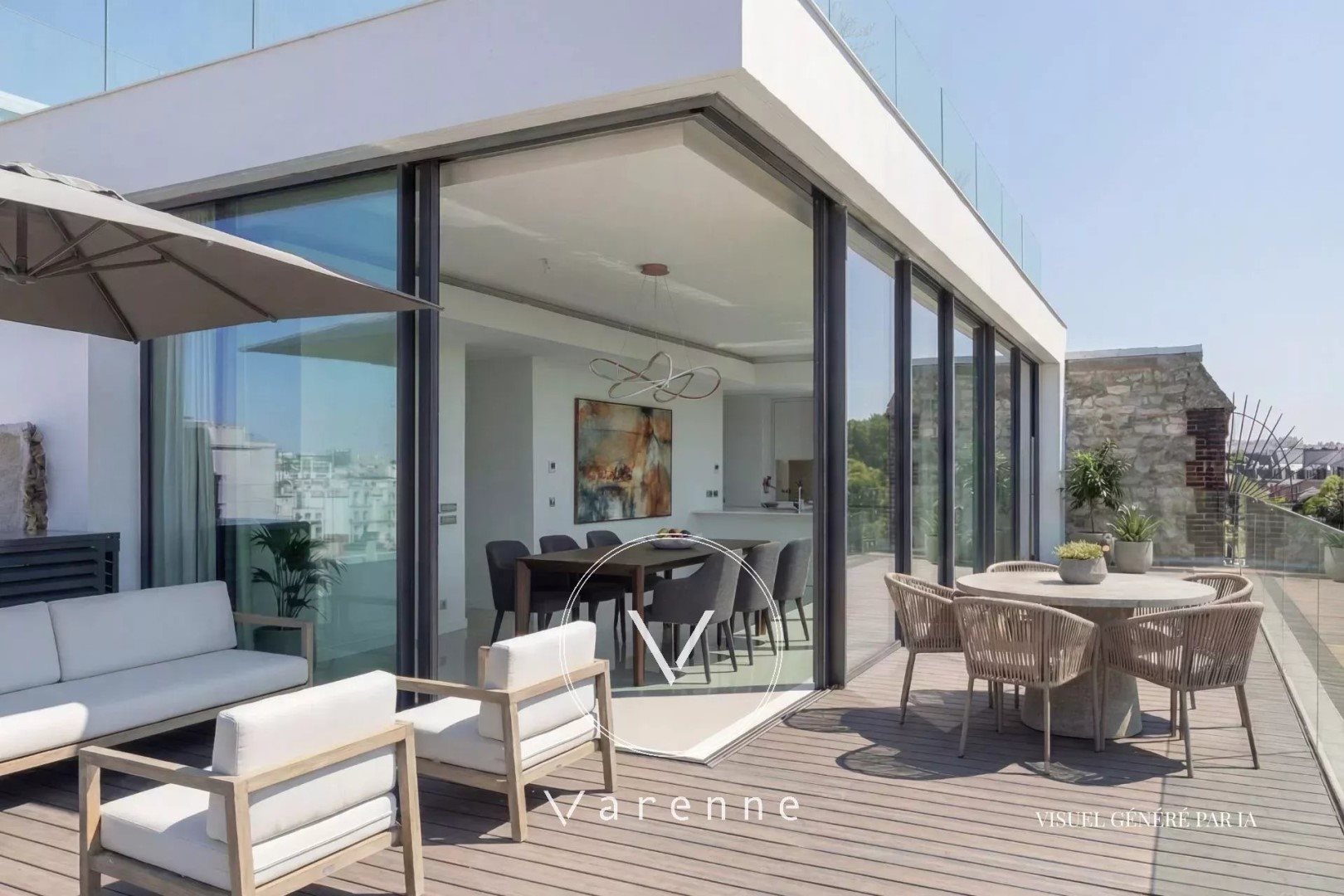 Paris 14e - Parc Montsouris - Duplex d'exception rénové à vendre - 5 pièces - 3 chambres - Terrasses - 250 m² Situé dans un environnement privilégié, face au Parc Montsouris, ce duplex d'exception de 250 m² (159,81 m² Carrez et 90 m² de terrasses plein ciel) s’étend sur les deux derniers étages d’un immeuble contemporain de très grand standing, et offre un panorama unique au-dessus des arbres. Entièrement rénové avec des prestations haut de gamme, il se distingue par une configuration idéale et des volumes généreux baignés de lumière. Au premier niveau - qui correspond au sixième étage, une vaste pièce de vie, trois chambres dont une suite parentale avec dressing et salle de bains attenante, une seconde salle de bains, un toilette indépendant, une grande buanderie et un balcon filant avec vue dégagée sur les frondaisons du parc. À l’étage, une spectaculaire pièce de réception prolonge l’expérience en s’ouvrant sur une immense terrasse de plus de 60 m² offrant une très belle vue panoramique sur le parc, Paris et ses monuments emblématiques. L’Architecture et rénovation soignées, les larges baies vitrées sur-mesure, l’orientation optimale, la qualité des matériaux et les extérieurs exceptionnels confèrent à ce bien un caractère unique.