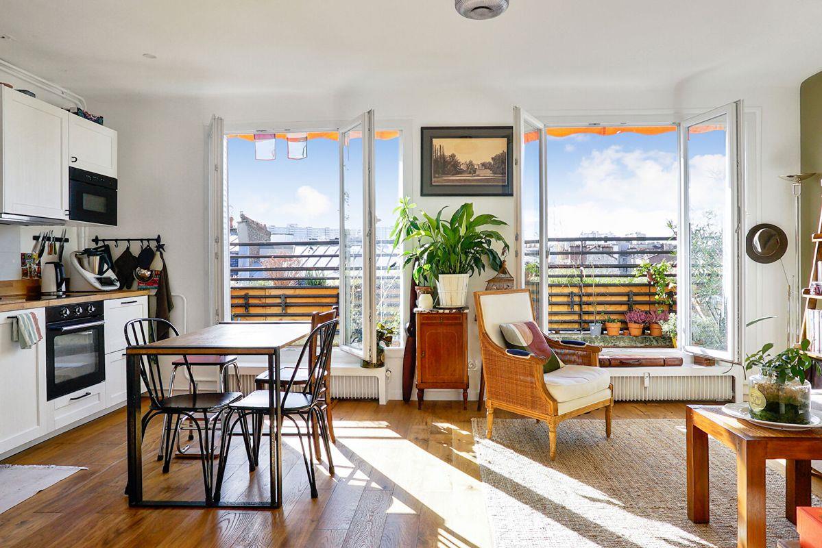 Paris 15e Convention Appartement à vendre 2/3 pièces Dans une copropriété récente de bon standing, à deux pas du quartier animé de la rue de la Convention, charmant appartement de 49 m² (loi Carrez) et 58,64 m² au sol situé au 8ème étage avec ascenseur d'un immeuble moderne. Il bénéficie d'un balcon avec vue sur la tour Eiffel ainsi que d'une terrasse ensoleillée. L'appartement, entièrement rénové, offre de belles vues dégagées, une luminosité agréable, un calme appréciable et un agencement optimisé. Il se compose d'une entrée, d'un séjour spacieux et lumineux donnant sur une terrasse exposée Sud, une cuisine américaine, aménagée et équipée, d'une belle chambre avec rangements ouvrant sur le balcon avec vue sur la tour Eiffel, d'un second espace pouvant faire office de bureau (idéal pour le télétravail), de chambre d'enfant ou de bébé, d'une salle d'eau, de toilettes séparées et d'un placard. Une cave complète ce bien. Le quartier est dynamique et très bien desservi par les transports (métro, bus, tramway), avec de nombreux commerces et services à proximité. A visiter sans tarder coup de coeur assuré ! (3.48 % honoraires Ttc à la charge de l'acquéreur.)