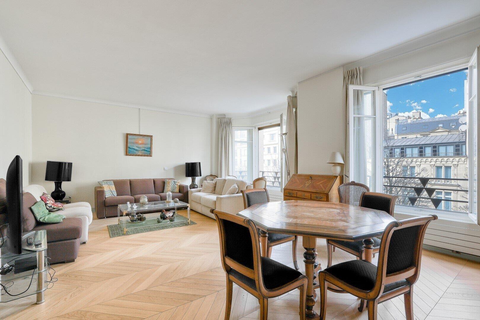 Exceptionnel ! Avenue Hoche, entre l'Arc de Triomphe et le Parc Monceau. Dans bel immeuble de standing, au 3ème étage avec ascenseur, magnifique appartement refait à neuf comprenant : une reception, un beau séjour / salle à manger (40m2), une cuisne séparée, u...