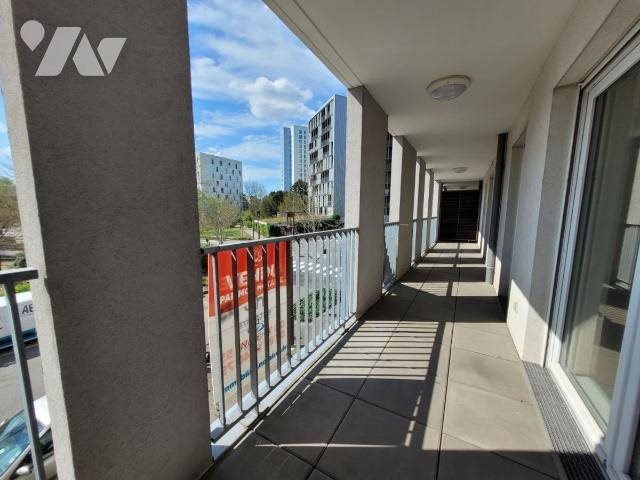 Nantes - Proximite Loire et Parc De Beaulieu : T3 d'environ 65m² au 1er étage sur 6 avec ascenseur d'un immeuble de 2011 bien entretenu : Entrée, séjour donnant sur grand balcon d'environ 17m² exposé Sud/Ouest, deux chambres sur parquet donnant sur la même bal...