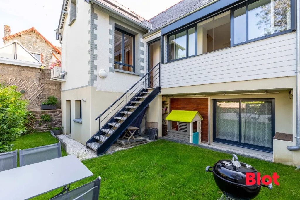 A Vendre Par Blot Immobilier Maison Rennes Gare / Sacre-Coeur Située dans une rue calme au pied du métro Jacques Cartier et de la Gare, cette maison entièrement rénovée est un bien rare sur ce quartier. La maison d'une superficie de 100 m² au sol, se compose, d'une entrée avec placard, Wc, d'une cuisine aménagée équipée, d'un salon traversant et d'une salle à manger dans le prolongement de la cuisine. A l'étage, un dégagement, deux chambres séparées par une salle d'eau. Un petit jardin exposé Ouest joliment arboré et accessible de la pièce de vie vous permettra de dîner en extérieur. Une buanderie et un cellier pour vélos viennent compléter ce bien. Réf : 634Mh Classe Energie : D - Classe Climat : D Ce bien vous est proposé par l'agence Blot Immobilier Alma - 83 rue de l'Alma 35000 Rennes - [Coordonnées masquées] Au prix de 588 000 Eur Fai dont 5.00 % Ttc d'honoraires à la charge de l'acquéreur. Prix Net vendeur : 560 000Eur. Les informations sur les risques naturels, miniers, ou technologiques, auxquels ces biens sont exposés, sont disponibles sur le site