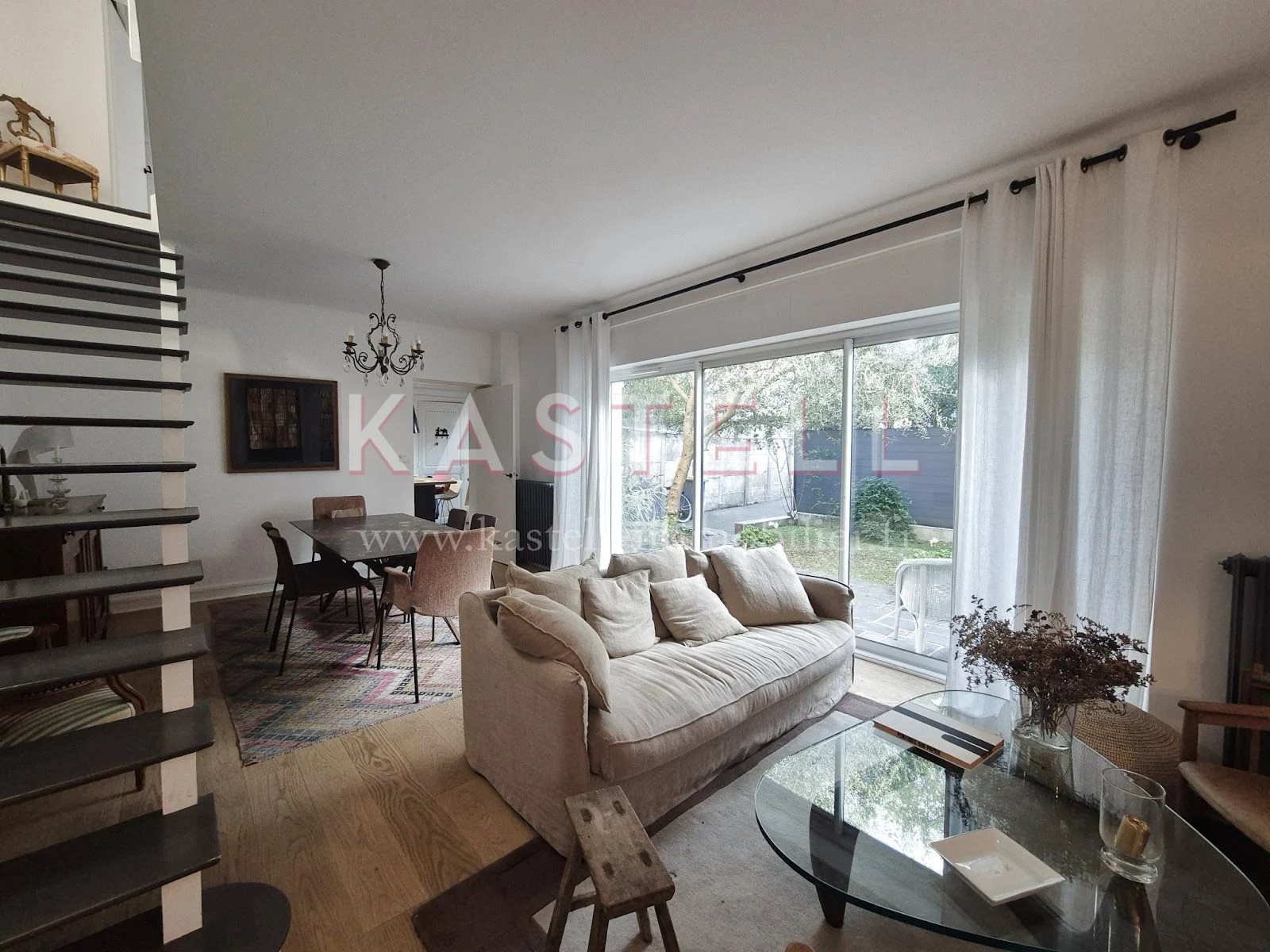 A vendre chez Kastell Immobilier, maison de ville dans le quartier Jeanne d'arc/ Sévigné. Au rez de chaussée on retrouve la pièce de vie, cuisine séparée, chambre ou bureau, le tout donnant sur le jardin de plain pied exposé est. A l'étage, 2 chambres dont une avec une mezzanine, salle de bains et Wc. Au 2eme etage, espace sous les combles pour salle de jeux, chambre d'adolescent... Le jardin charmant est exposé sud/est. Allée avec possibilité de stationner 2 voitures. Chauffage au gaz. Petite cave. La maison est située en fond de parcelle, à proximité des commerces, des écoles Jeanne d'arc/Assomption, St Vincent.