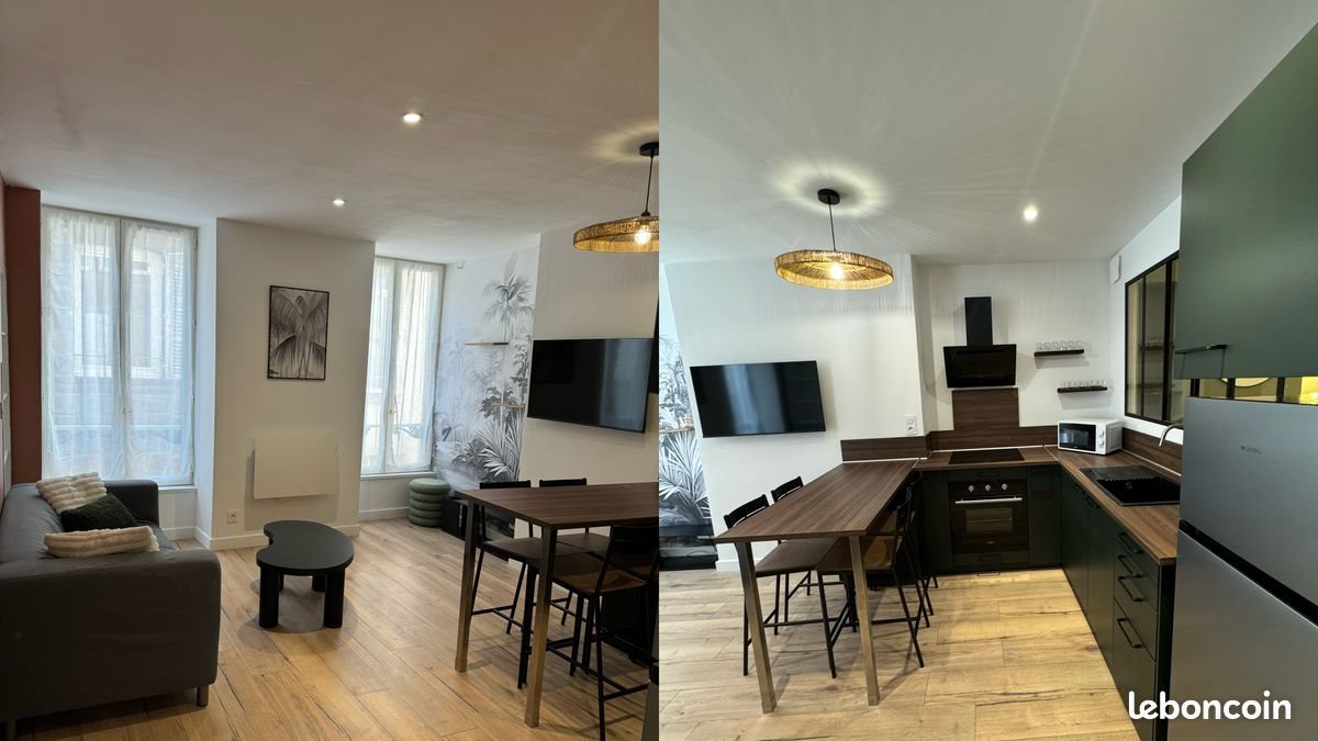 Charmant T2 meublé situé rue Terrasse, parallèle à la place de la Victoire et à 250m de la place de Jaude. Il est donc dans l’hyper centre de Clermont-Ferrand, dans un quartier dynamique et animé à proximité des restaurants, bars et commerces. L’Arrêt de tramway le plus proche est place de Jaude à moins de 5 min à pied. L’Appartement a été refait à neuf (été 2025). Il est au 2ème étage d’une petite résidence en pierres de Volvic de 4 étages, sans ascenseur. Il est composé de : - Une pièce de vie avec cuisine équipée (four, hotte, plaque induction, réfrigérateur/congélateur, micro-onde, couverts, verres, casseroles/poêles, ustensiles de cuisine…) ouverte sur le séjour (canapé, table haute + 4 chaises, table basse, meuble Tv, Tv 43 pouces ) - Une chambre avec lit 140x190cm, coin bureau et dressing (penderie, commode et nombreuses étagères), verrière coulissante - Une salle de bain avec douche spacieuse, sèche-serviette et machine à laver - Un wc séparé. Grandes fenêtres en double vitrage, isolation, ventilation et système de chauffage électrique refaits à neufs. Radiateurs connectés dernières générations (Nf 3 étoiles 1 oeil, système intelligent et contrôlable à distance). Dpe D avant rénovation, nouveau diagnostic prévu en 2026. Loué meublé, disponible dès le 23 décembre. Loyer : 700€ hors charges + 40€ charges (eau froide + entretien des communs), l’électricité et internet (fibre) restent à la charge du locataire. Dépôt de garantie : 1.400€ (2 mois du loyer hors charges) Pas de frais d’agence, location entre particuliers. Pas de visite sans dossier complet : - contrat de travail - trois derniers bulletins de salaire - dernier avis d'imposition - trois dernières quittances de loyer du logement occupé. Ce bel appartement est idéal pour un(e) étudiant(e), un couple ou un(e) actif(ve) souhaitant un logement proche de toutes commodités ! - Agences s’abstenir -